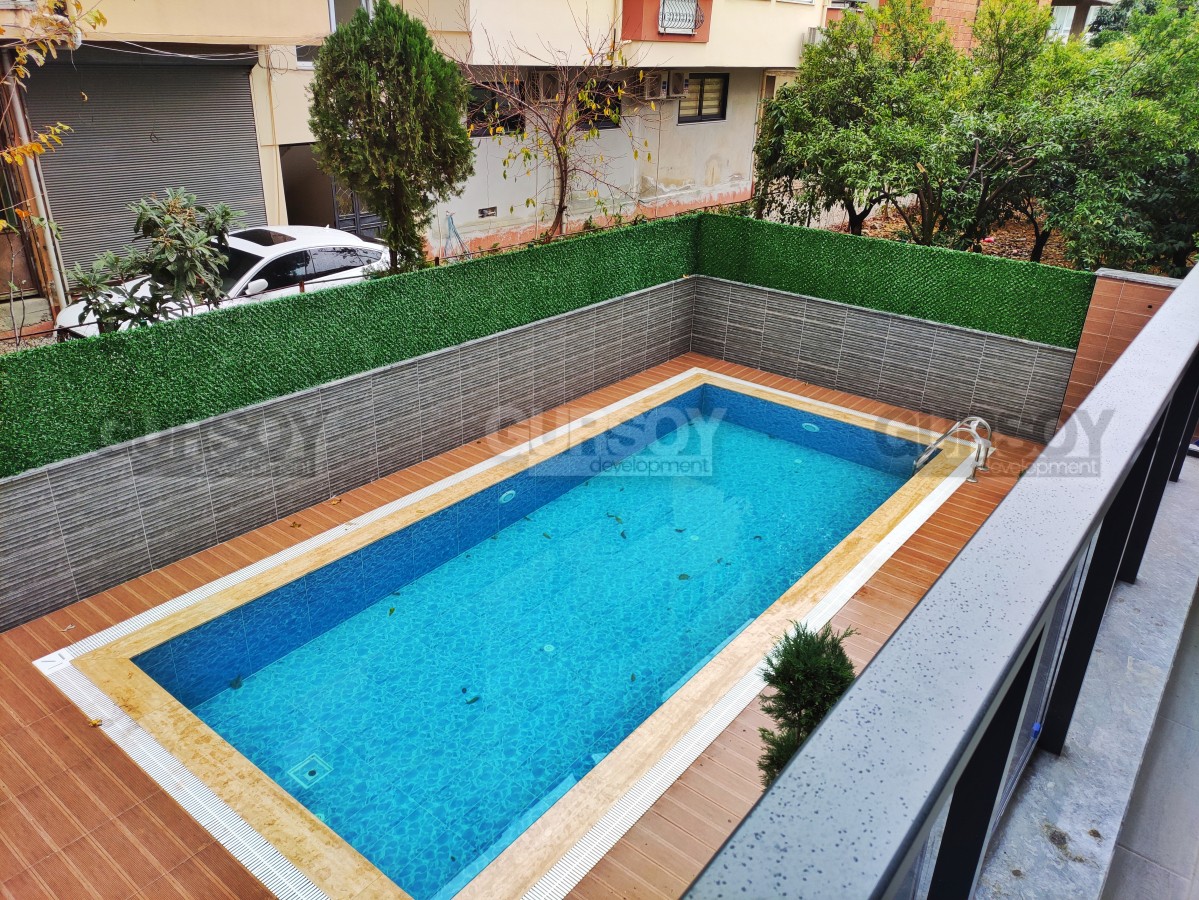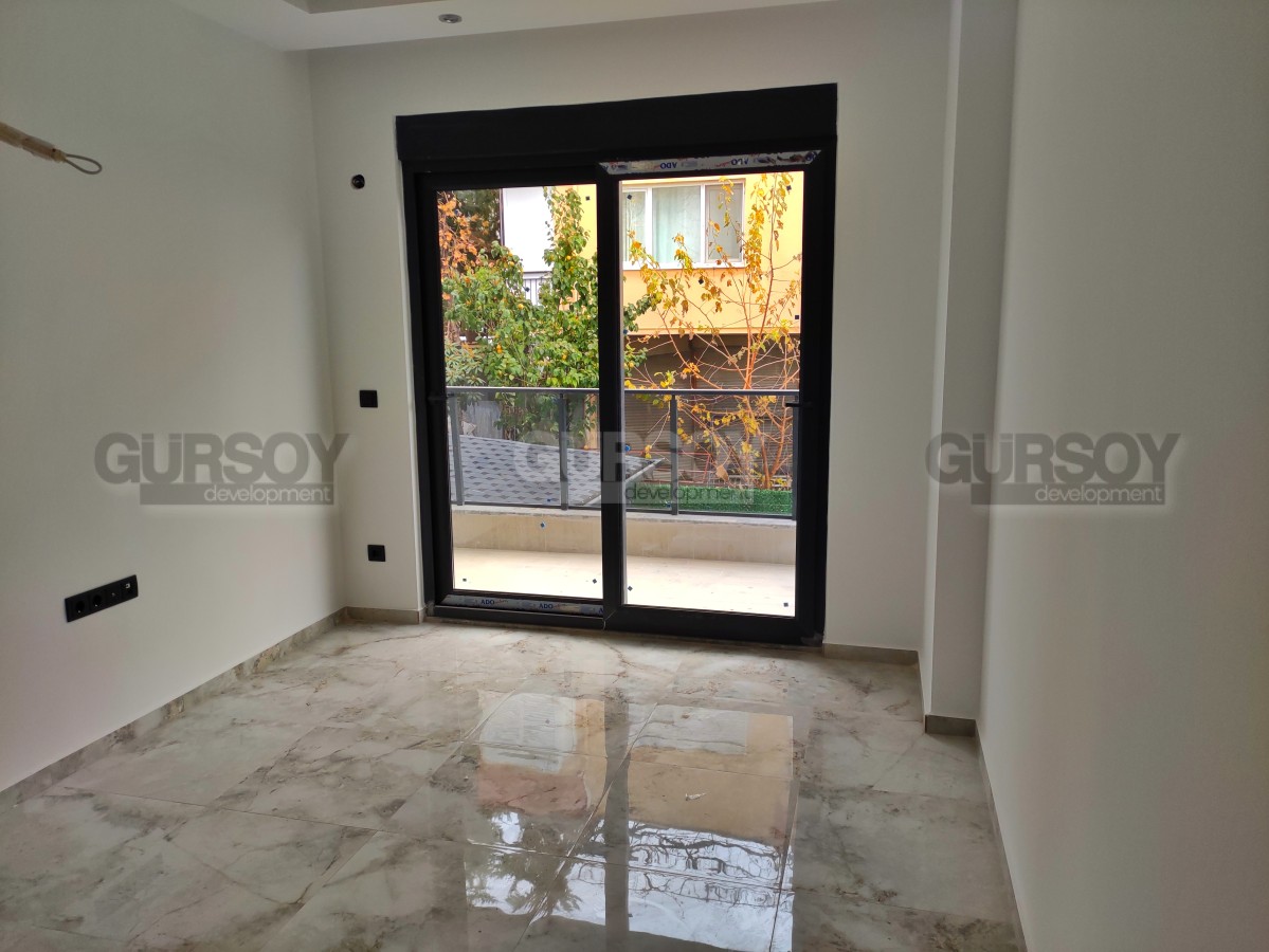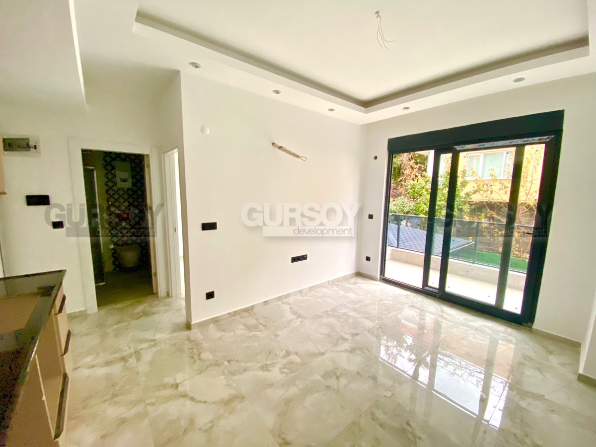 Компания Gürsoy Development представляет вашему вниманию новую квартиру 1+1 в данном комплексе. Площадь квартиры 40 м2, а планировка 1+1 подразумевает наличие гостиной, совмещённой с кухней, спальни, ванной комнаты и балкона. Квартира продаётся в полной чистовой отделке - установлен кухонный гарнитур с нишами под бытовую технику, напольное покрытие, окна ПВХ с двойным остеклением и т.д. Ванная комната оборудована душевой кабиной и современной сантехникой. Квартира расположена на 1-м этаже 4-этажного жилого комплекса 2023 года постройки. С балкона открывается чудесный вид на бассейн.