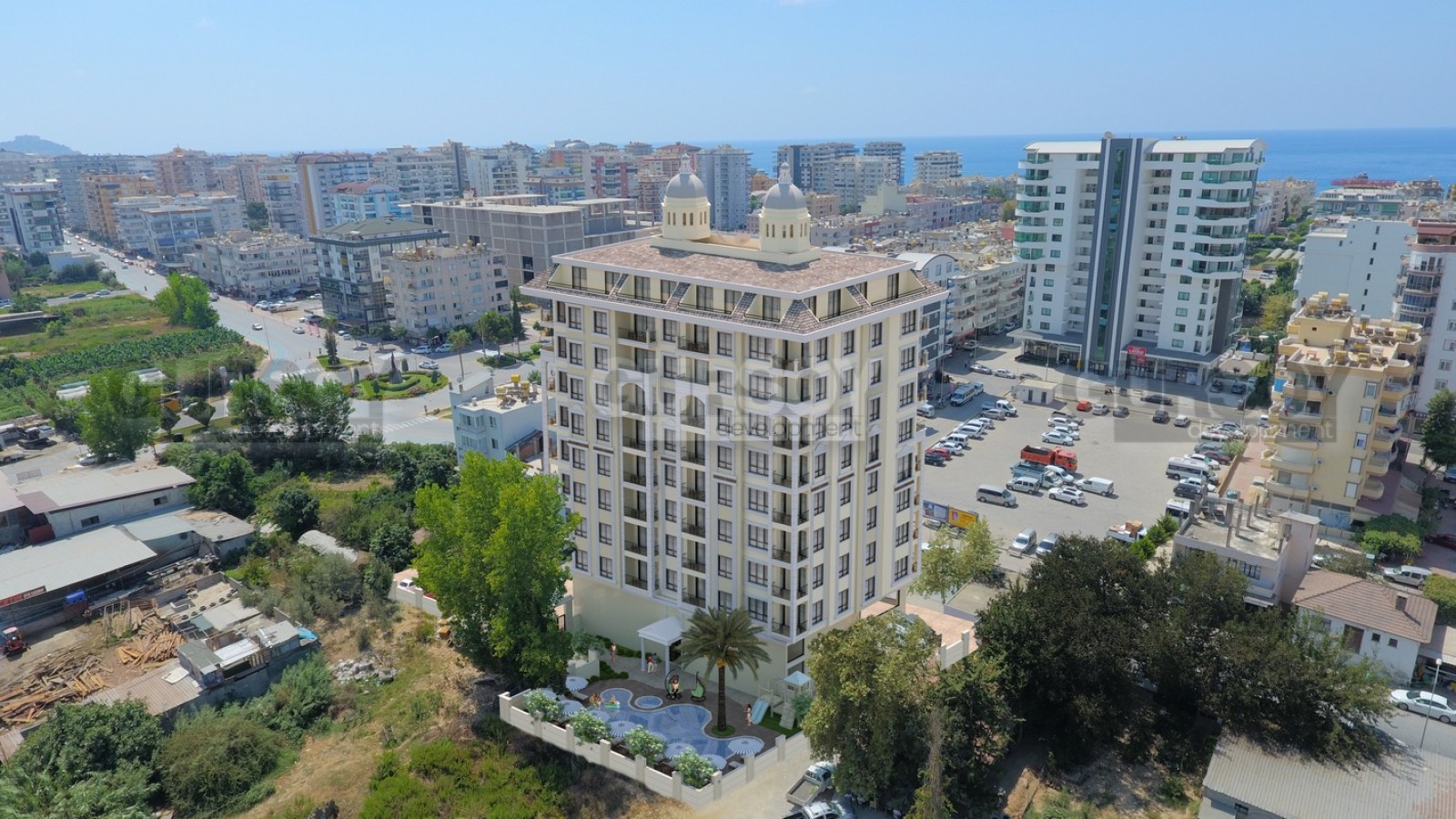 Жилой комплекс со всеми удобствами расположен в популярном районе Алании - Махмутлар, в 12 км от центра Алании и в 30 км от международного аэропорта Газипаша. Песчаные пляжи средиземноморского побережья находятся всего в 550 м от комплекса. Вся необходимая инфраструктура - супермаркеты, кафе и рестораны, аптеки, спортивные и детские площадки, отделения банков, рынок и пр. - находится в шаговой доступности.