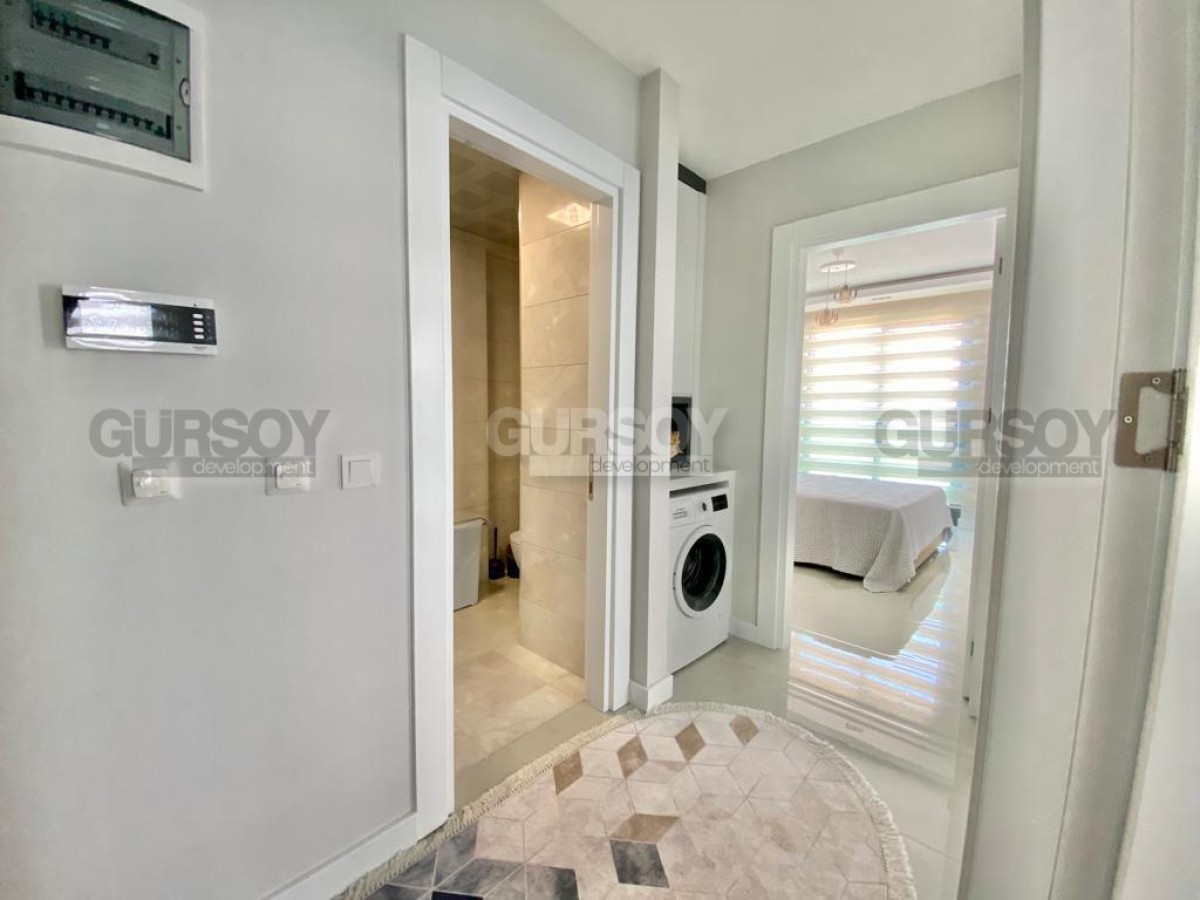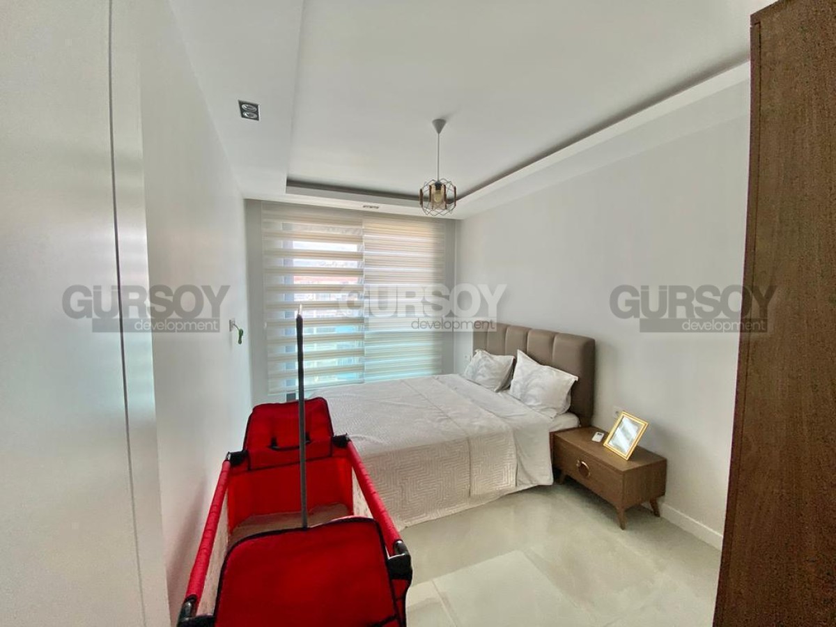 Жилой комплекс, в котором находится квартира, обеспечен полной инфраструктурой: открытый и крытый бассейны, хамам, сауна, фитнес зал, детская площадка, парковка и охрана. А через дорогу находится бескрайнее Средиземное море с благоустроенными пляжами.