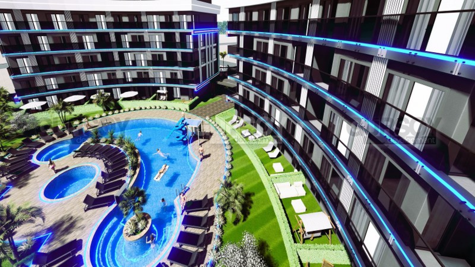 Этот жилой комплекс, который будет сдан в конце этого года, обещает стать истинным райским уголком для своих будущих жителей. Здесь вас ждет богатый выбор развлечений и удобств для всей семьи. Огромный бассейн с аквапарком, бар у бассейна, а также крытый бассейн, позволят вам остаться в форме и насладиться водными развлечениями в любое время года. Сауна, хамам и парная помогут вам расслабиться и снять усталость после долгого дня. Для детей здесь есть игровая площадка и детская комната, а для взрослых – барбекю, караоке и кинотеатр. Охрана и видеонаблюдение обеспечат вашу безопасность и спокойствие в течение всего времени проживания.