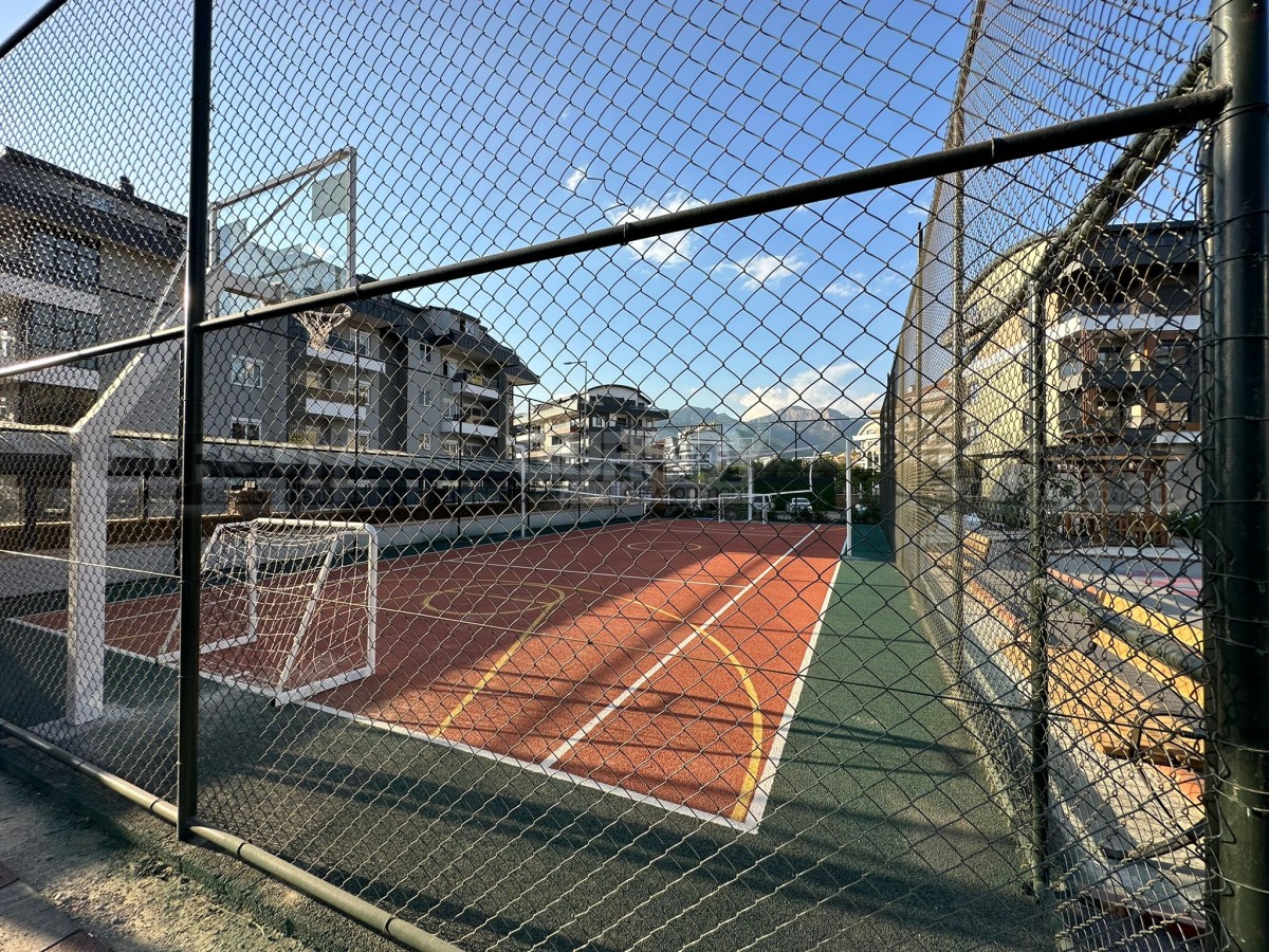 Внутренняя инфраструктура комплекса представлена открытым бассейном с водными горками, футбольным полем, детским парком и беседкой для отдыха в саду. Все сервисы уже исправно функционируют, и комплекс полностью готов к проживанию.