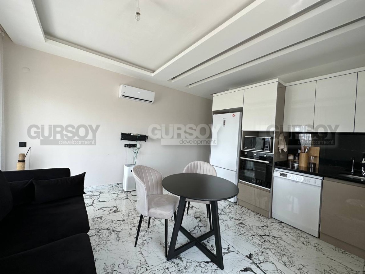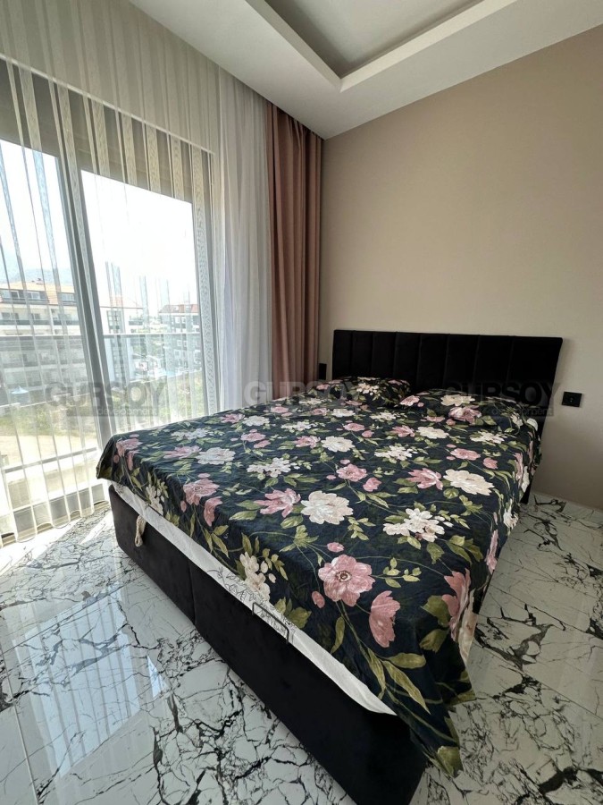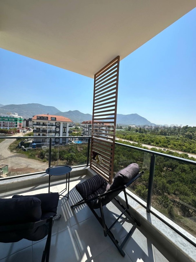 Вашему вниманию представлена небольшая квартира на 3-м этаже в благоустроенном жилом комплексе, введенном в эксплуатацию в 2022 году, в новом квартале популярного района Аланьи - Оба. Общая площадь данной квартиры - 52 м2, на которых расположены: совмещенная с кухней гостиная, спальня, укомплектованный душевой кабиной и стиральной машиной санузел, и открытый балкон, с видом на горы. В квартире сделан качественный ремонт, установлены кондиционеры, современная мебель и новейшая бытовая техника. В гостиной имеются: комфортабельный диван и компактный обеденный стол, с мягкими стульями. Кухня оснащена холодильником, посудомоечной машиной, духовым шкафом и газовой плитой. В спальне установлены большая кровать и гардеробный шкаф, в прихожей - дополнительные шкаф и комод, а на балконе - удобная садовая мебель.