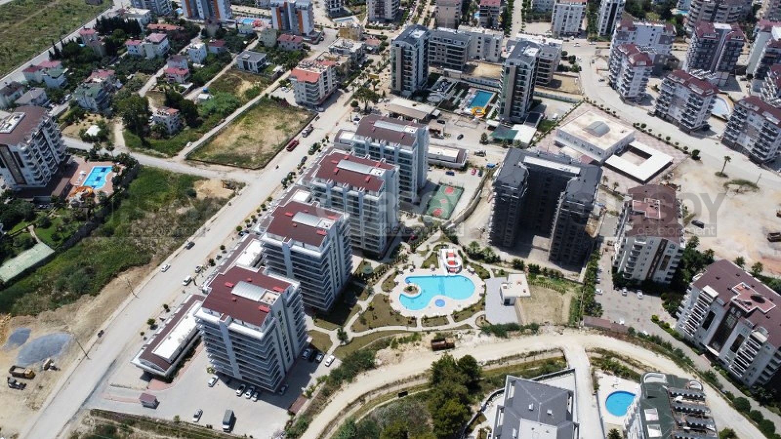 Жилой комплекс находится на расстоянии 900 метров от моря в районе Авсаллар. Это живописный курортный район Алании с шикарными песчаными пляжами. Здесь очень развита инфраструктура: кафе и рестораны, супермаркеты и магазины, почта, банкоматы, детские и спортивные площадки, школы и салоны красоты.