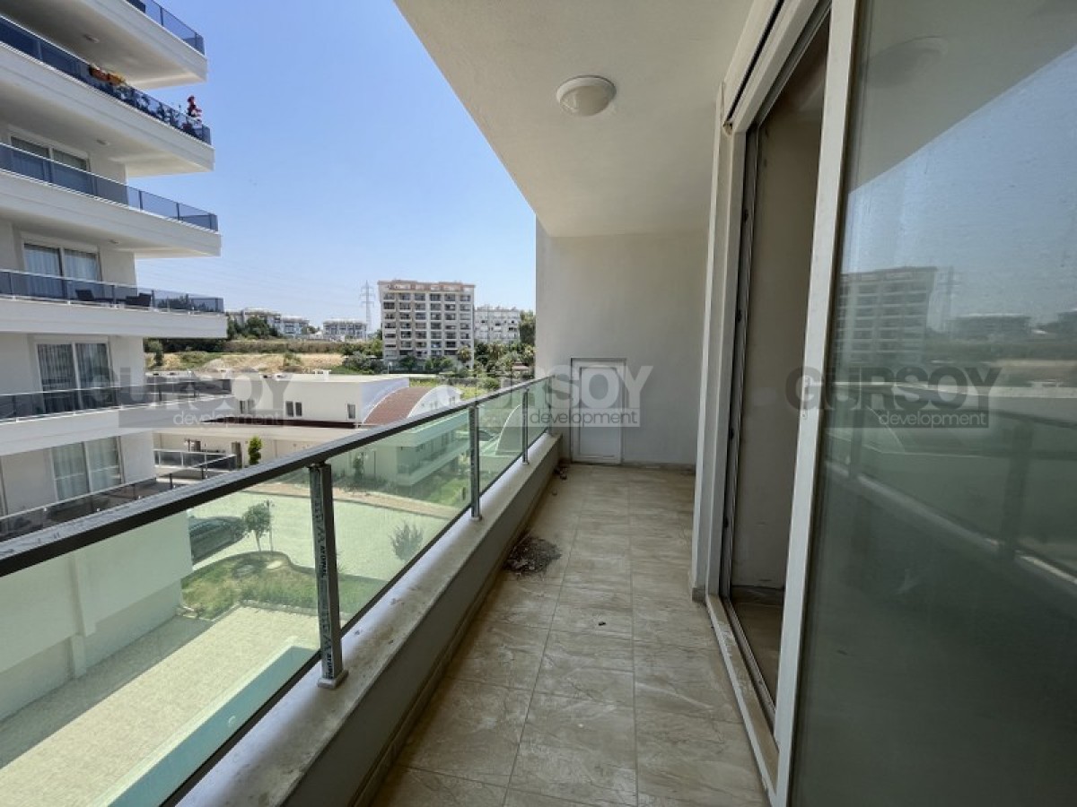 Площадь квартиры - 65 кв.м, а планировка 1+1 подразумевает наличие гостиной, совмещённой с кухней, спальни, ванной комнаты и балкона. Квартира продаётся в полной чистовой отделке - с установленным кухонным гарнитуром, напольным покрытием, окнами ПВХ с двойным остеклением, входными и межкомнатными дверями. Ванная комната оборудована душевой кабиной и сантехникой. Квартира расположена на 3-м этаже 9-этажного современного жилого комплекса 2022 года постройки. С балкона открывается вид на бассейн и ухоженную территорию комплекса. Квартира выходит на северную сторону.