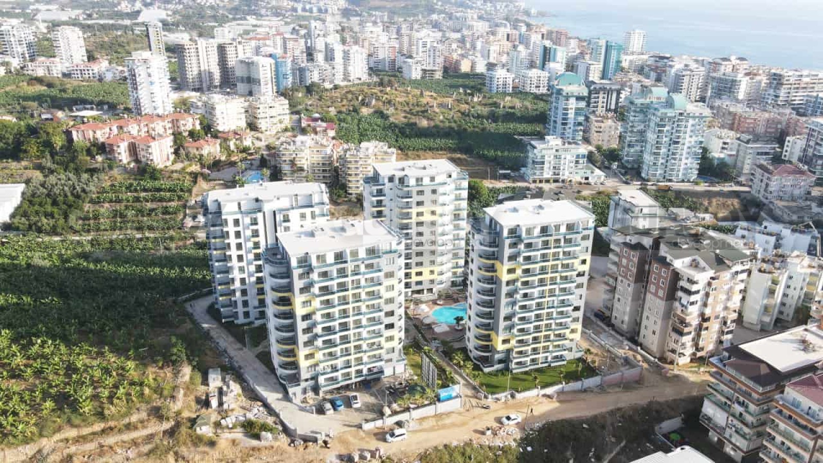 Проект расположен в районе Махмутлар. На участке площадью 10.419 м2 размещено 4 блока рассчитанных на 206 квартир. На продажу выставлены 5 квартир: