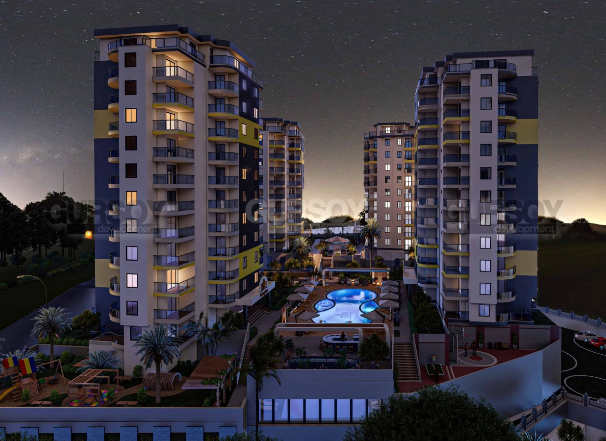 Благодаря широким бассейнам и богатому ландшафту вы сможете почувствовать себя в отпуске, даже не выходя из дома. Это не просто проект. Это Ваш дом. При планировании этого нового комплекса застройщик хотел создать для вас роскошную, комфортную и безопасную среду для жизни. Это идеальное жилое пространство с уникальным видом на море и пляж, близостью к центру города и с интерьерами с современным дизайном. Благодаря своему расположению в Алании/Махмутлар - популярном центре отдыха и жизни в быстро развивающемся инвестиционном регионе, проект предоставит вам удобства, позволяющие легко добраться до любого уголка города. Проект находится всего в 400 метрах от моря и пляжа.