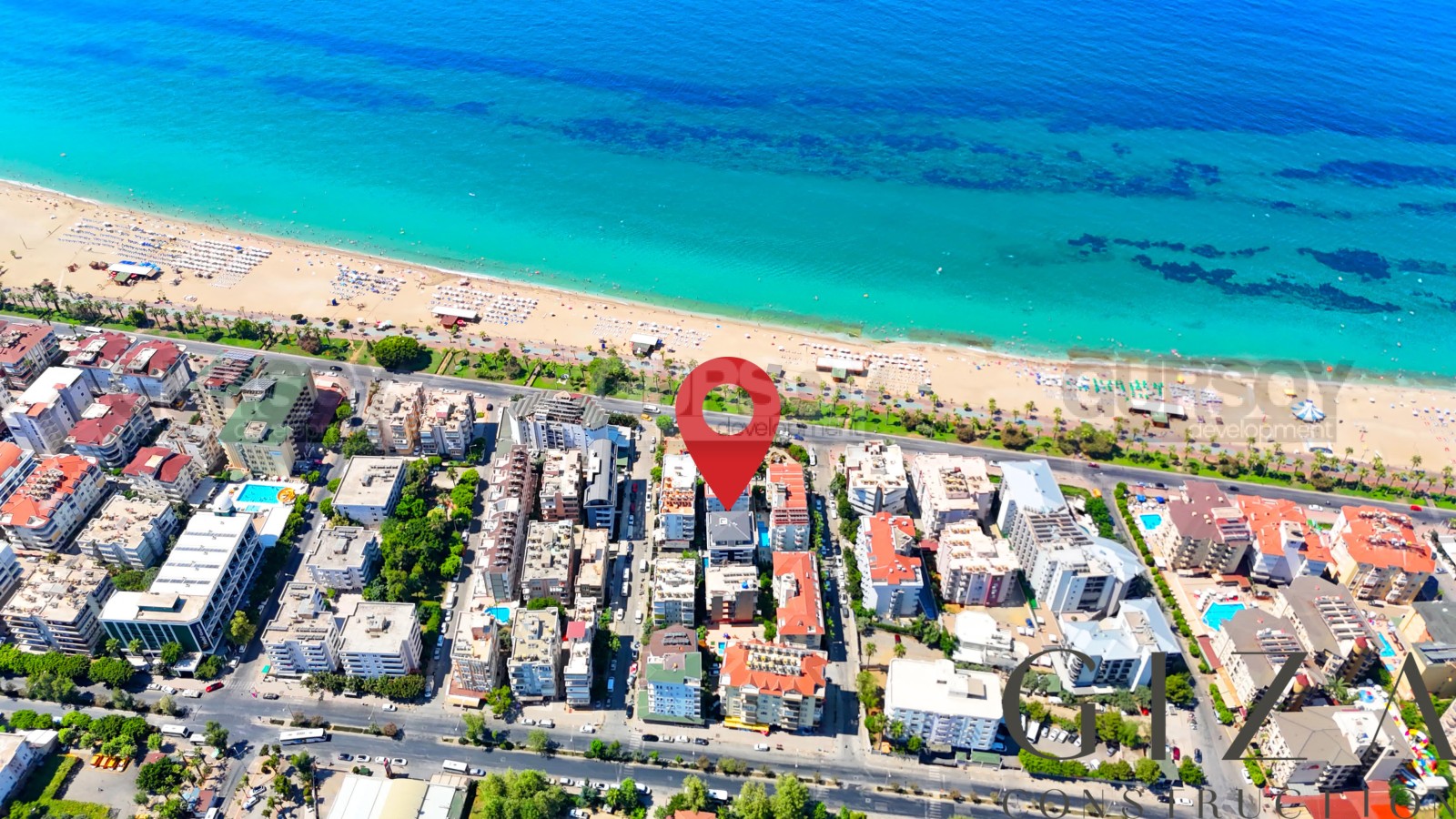 Комплекс расположен в самом востребованном районе Аланьи — у пляжа Клеопатры. Этот район славится развитой инфраструктурой, ресторанами, магазинами, прогулочными зонами и, конечно, одним из лучших пляжей Средиземного моря. Благодаря расположению в шаговой доступности от моря и центра города, объект обладает высоким арендным потенциалом и удобством для постоянного проживания.