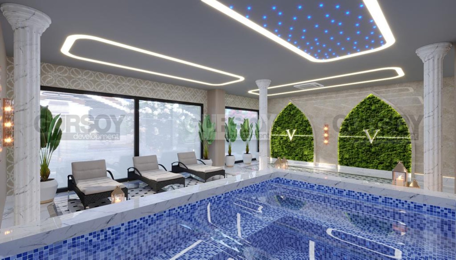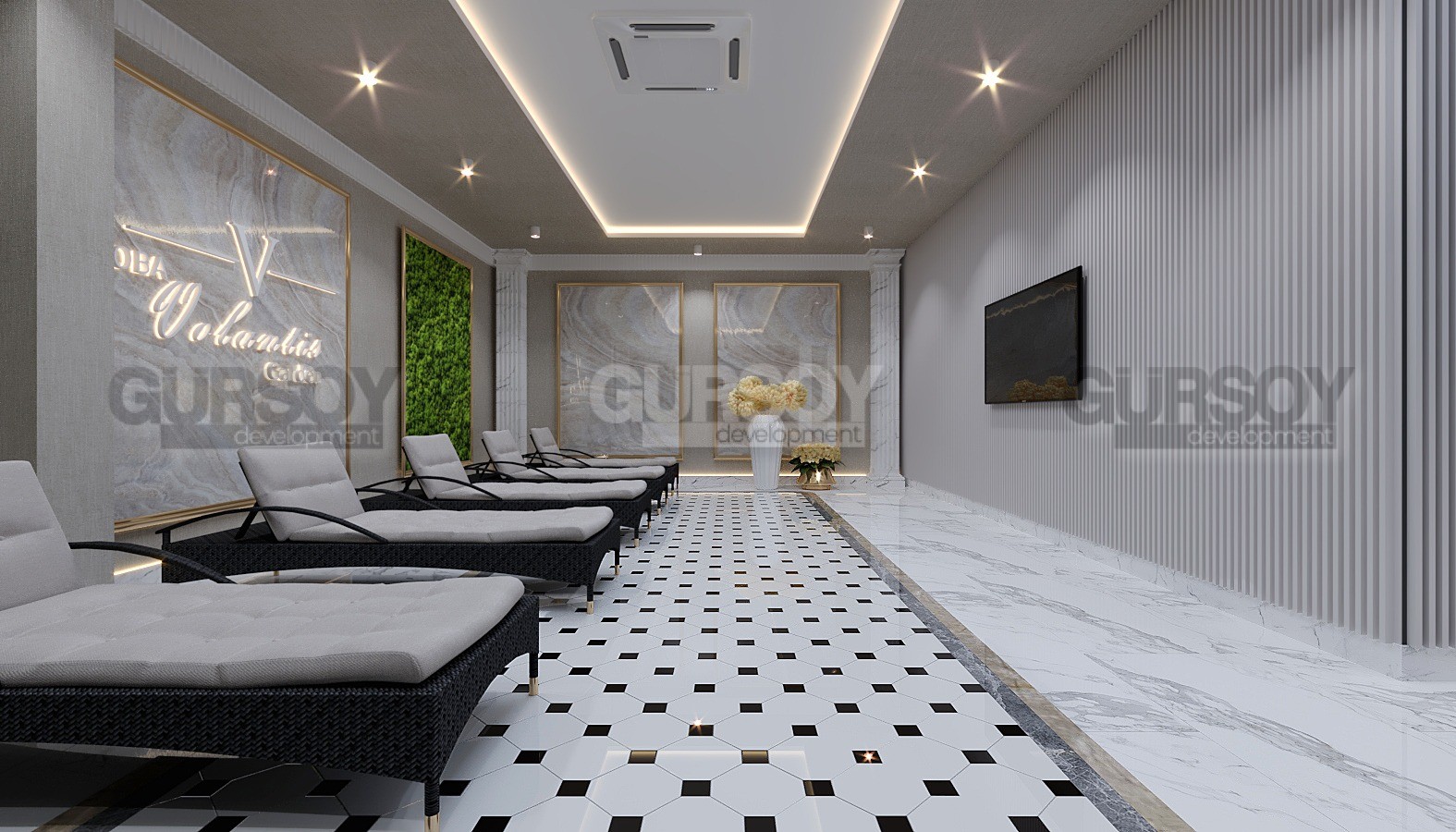 На территории проекта будет создана роскошная инфраструктура, включающая открытый бассейн с джакузи, детский бассейн, подогреваемый крытый бассейн, лобби, фитнес-зал, детская игровая комната, детская площадка, сауна, хамам, паровая комната, комната для отдыха, массажный кабинет, теннисный стол, кинотеатр, зона отдыха у бассейна, зона барбекю, беседки, генератор, открытая парковка, служба охраны 24/7, консьерж и трансфер к пляжу и магазинам.