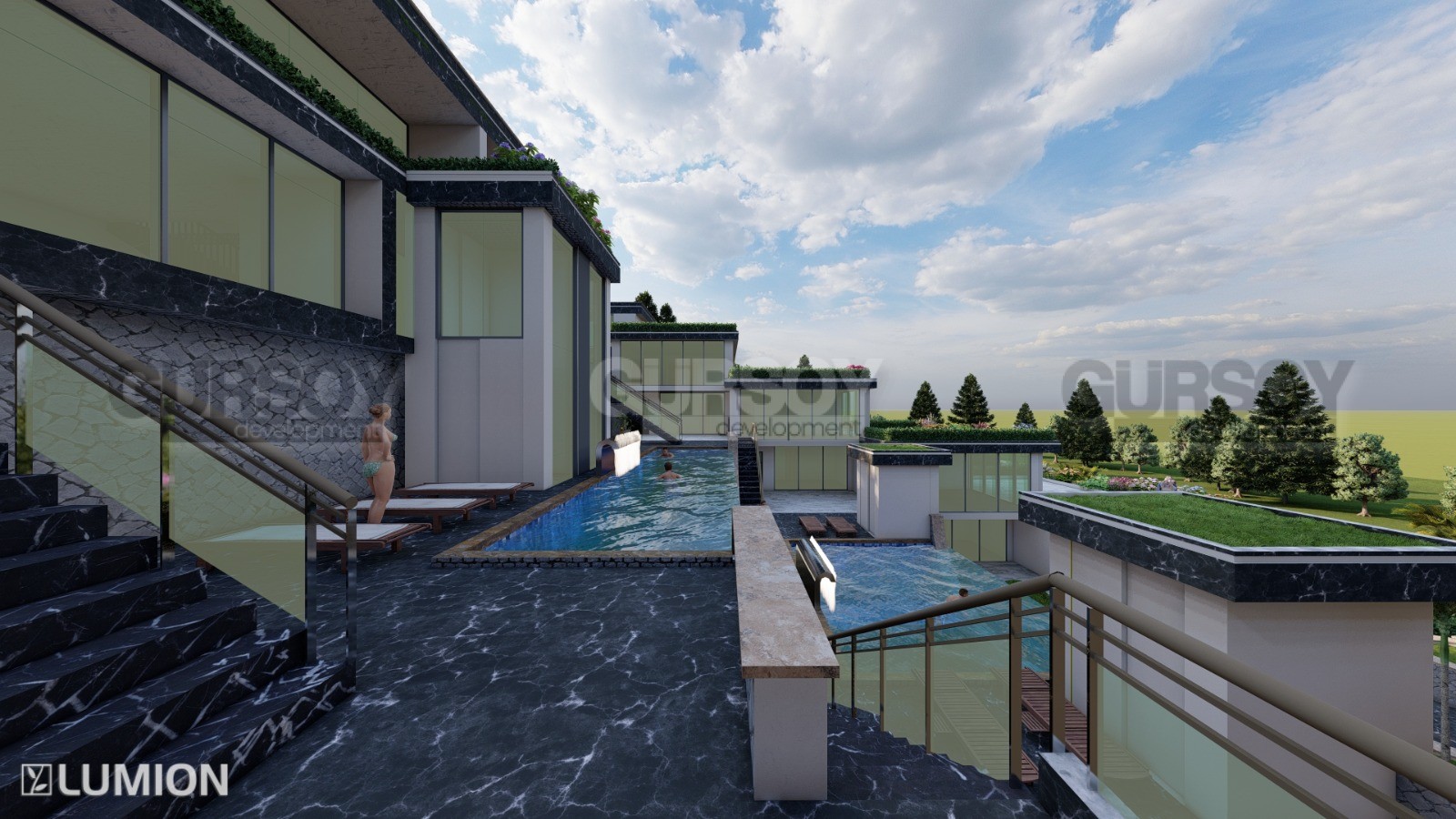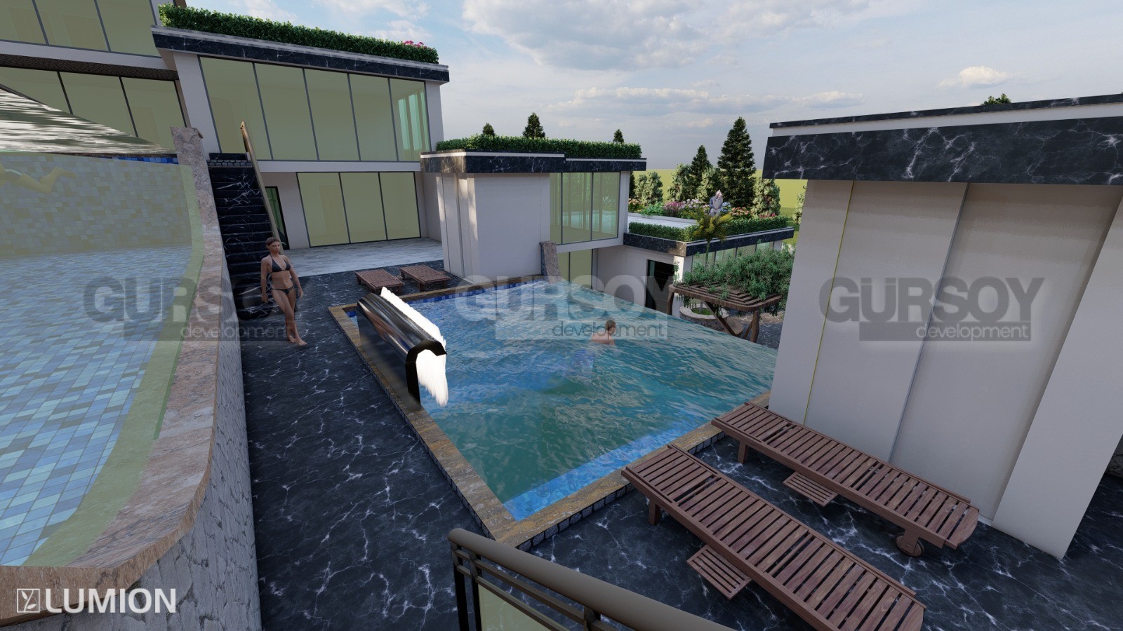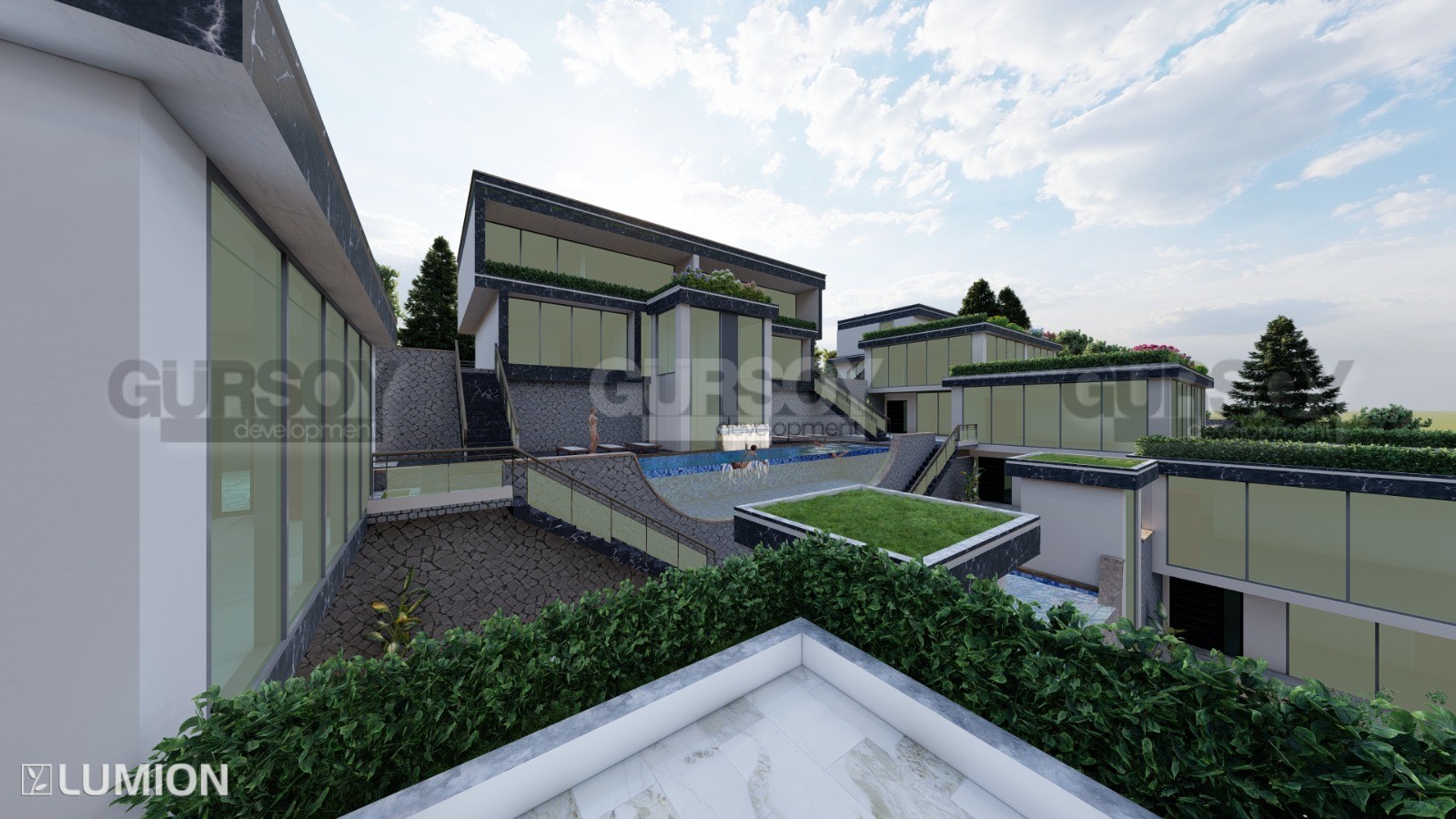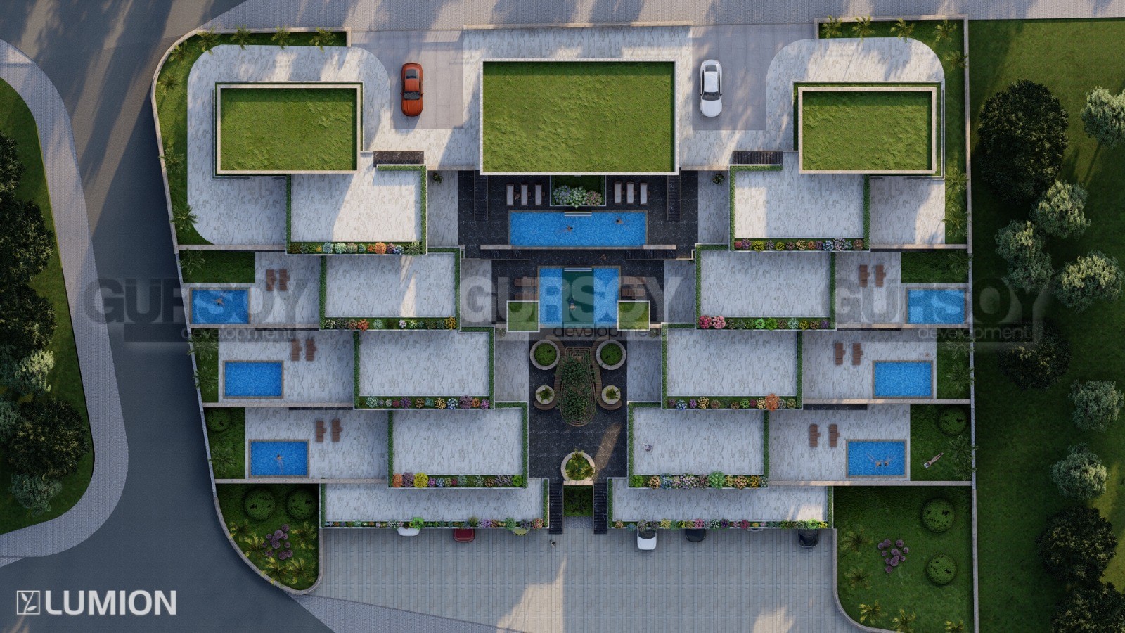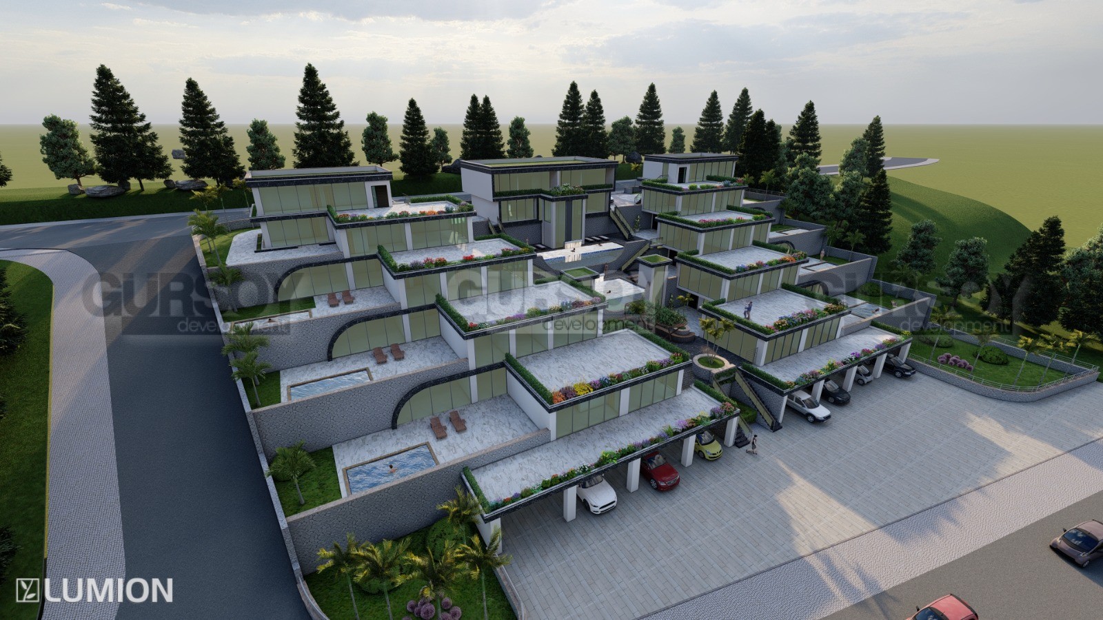 Проект концепции вилл будет состоять из апартаментов 2+1 с с большими террасами и 2+1 с собственными бассейнами. Общая площадь апартаментов варьируется от 157 м2 до 262 м2.