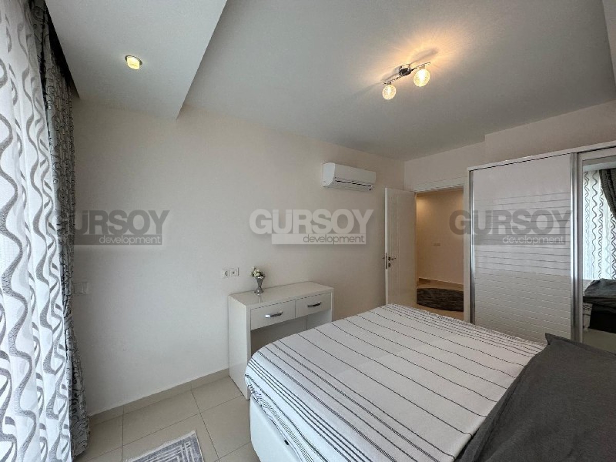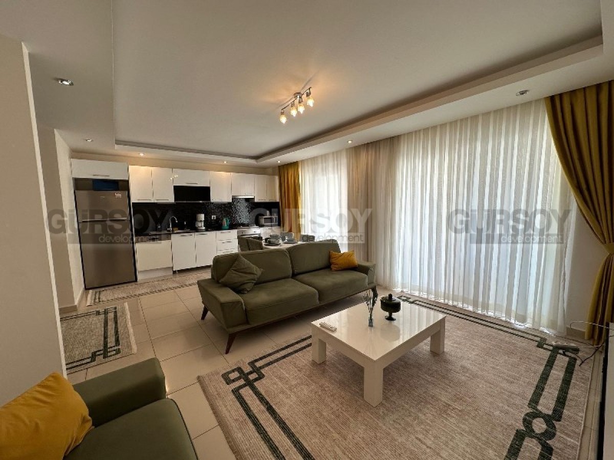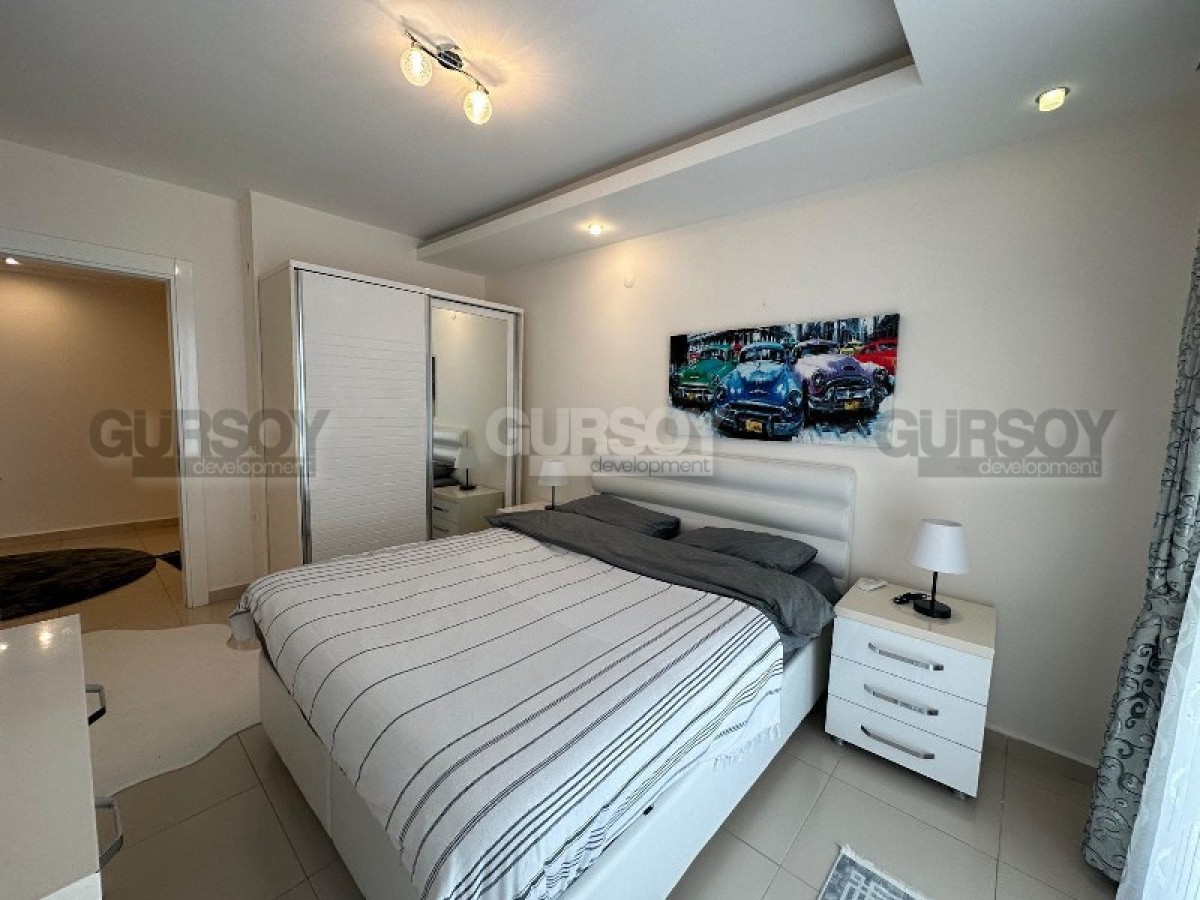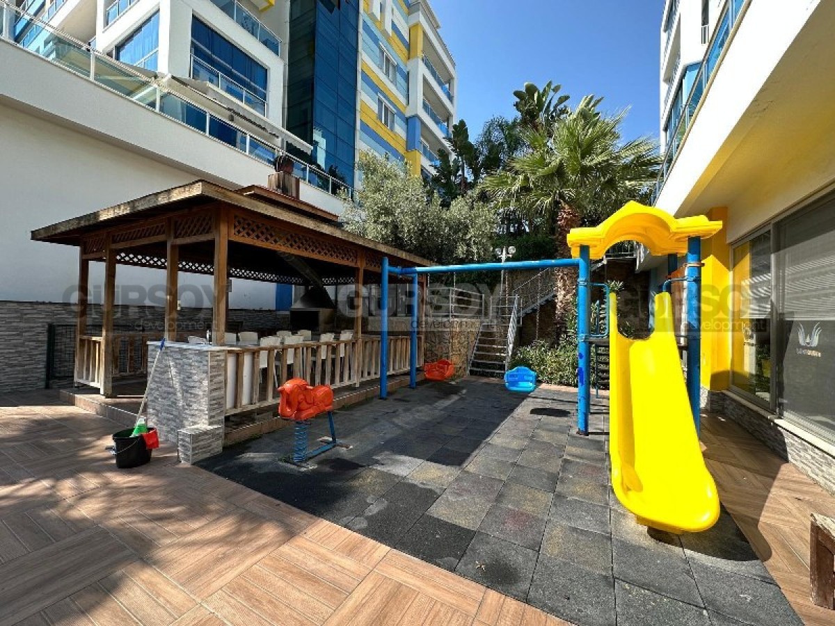 Дуплекс 2+1 предлагает продуманную планировку, включающую светлый зал, совмещенный с кухней, что создает пространство для комфортного отдыха и приема гостей. На первом уровне расположены спальня и общий санузел. Второй уровень включает вторую спальню с выходом на один из двух балконов, а также большую террасу, идеально подходящую для летних вечеров на свежем воздухе. Квартира полностью меблирована и оборудована современной техникой, что обеспечивает максимальный комфорт для проживания.
