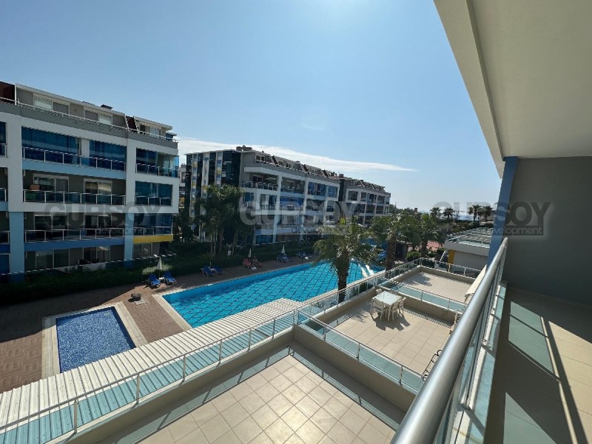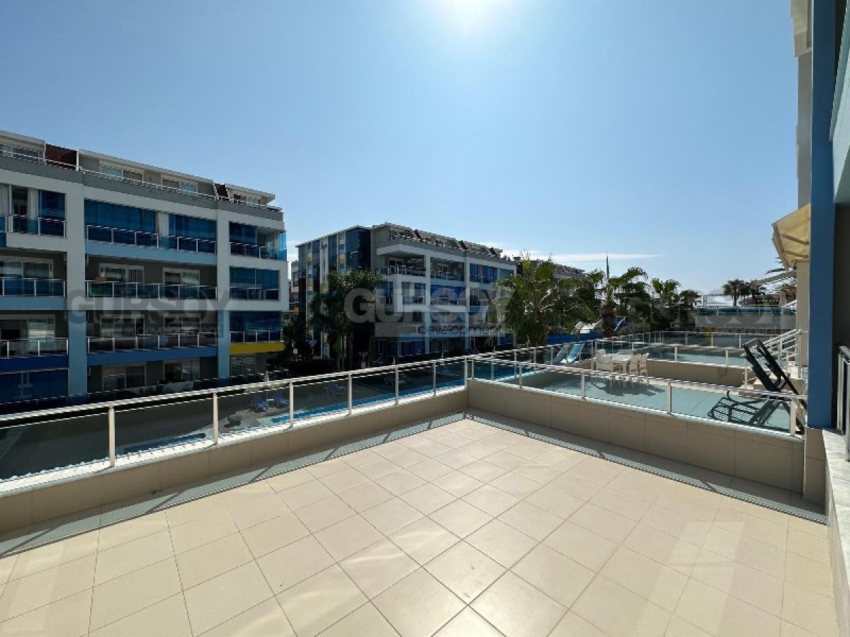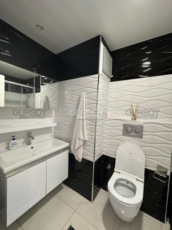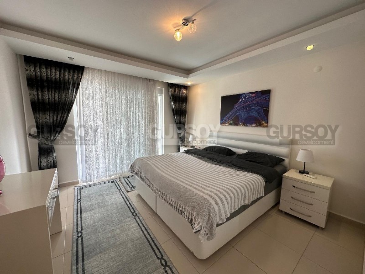 Дуплекс 2+1 предлагает продуманную планировку, включающую светлый зал, совмещенный с кухней, что создает пространство для комфортного отдыха и приема гостей. На первом уровне расположены спальня и общий санузел. Второй уровень включает вторую спальню с выходом на один из двух балконов, а также большую террасу, идеально подходящую для летних вечеров на свежем воздухе. Квартира полностью меблирована и оборудована современной техникой, что обеспечивает максимальный комфорт для проживания.