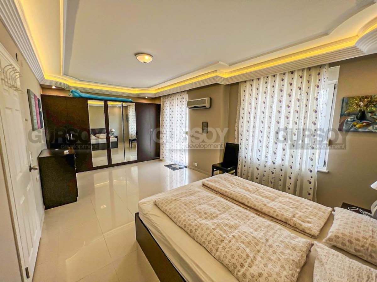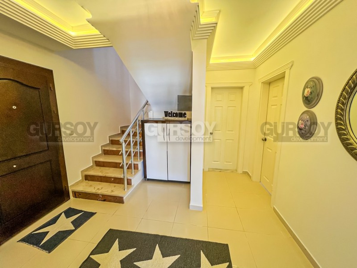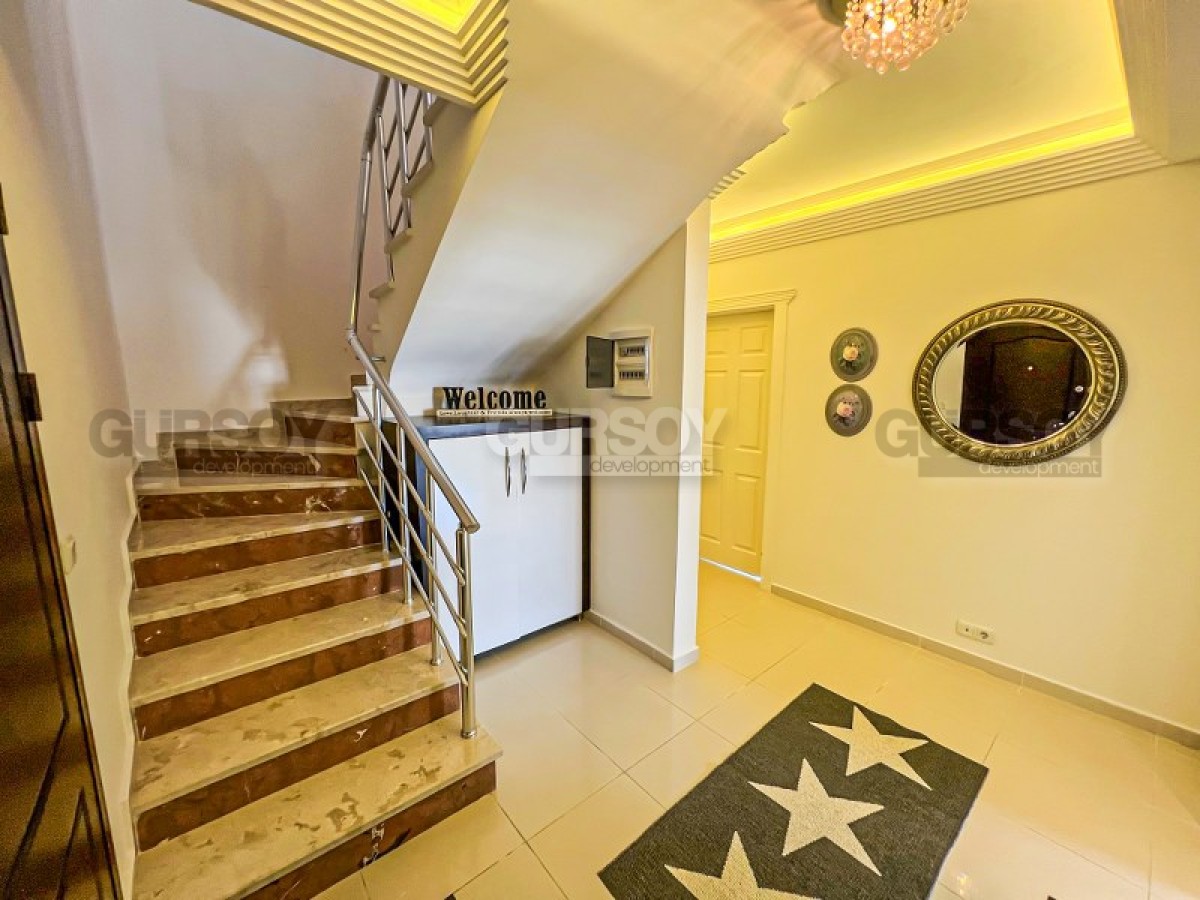 В комфортабельном районе Аланьи - Нижняя Оба выставлена на продажу просторная двухуровневая квартира, которая идеально подходит для проживания большой семьи, а также для получения вида на жительство в Турции. Расположена она на 4-м этаже с мансардой в жилом комплексе, построенном в 2012 году. Общая площадь дуплекса - 225 м2, в планировке - совмещенная с кухней гостиная, 3 спальни, кладовая, 3 санузла, 2 балкона и открытая терраса с видом на город и горы. Квартира - светлая и современная, с качественным ремонтом и приятным интерьером. Просторная гостиная укомплектована мягкими диванами, стильным журнальным столиком, тумбой и обеденным столом. Кухонный уголок оснащен новой бытовой техникой - холодильником, посудомоечной машиной, сенсорной плитой и духовым шкафом. В спальнях установлены комфортабельные кровати, тумбы, комоды и гардеробные шкафы, а на балконах и террасе организованы зоны отдыха, с современной плетеной мебелью.