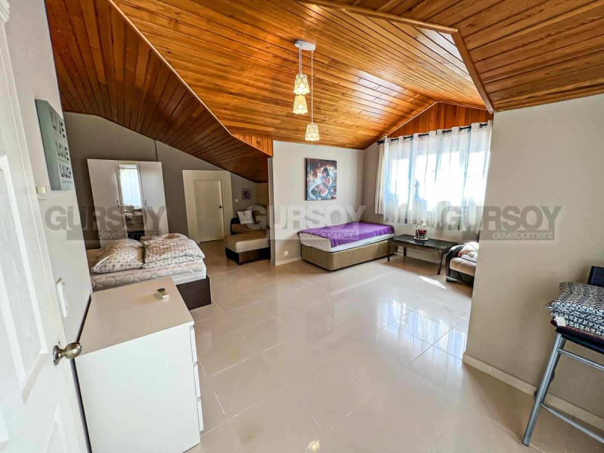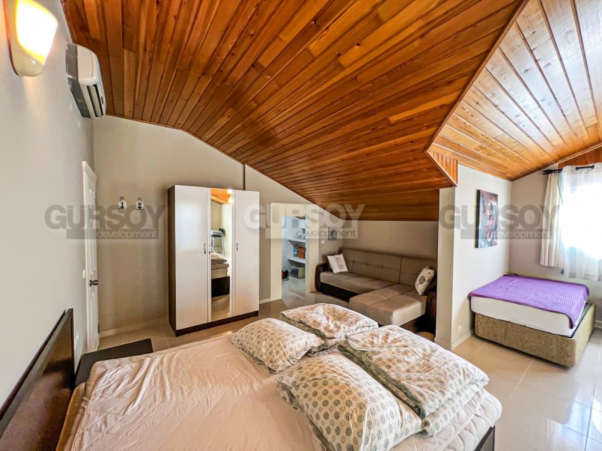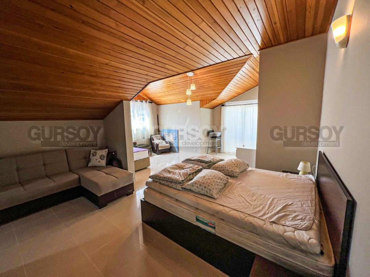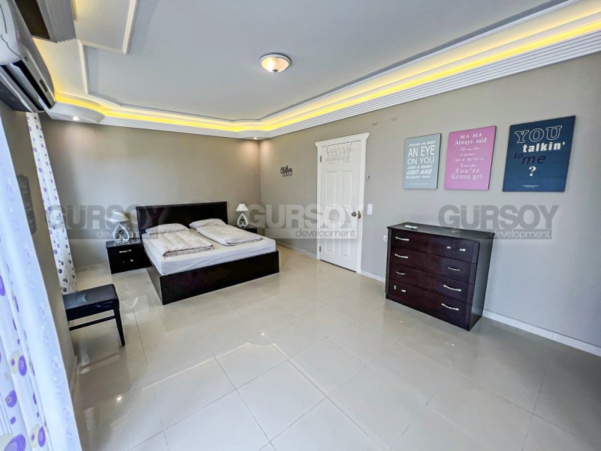 В комфортабельном районе Аланьи - Нижняя Оба выставлена на продажу просторная двухуровневая квартира, которая идеально подходит для проживания большой семьи, а также для получения вида на жительство в Турции. Расположена она на 4-м этаже с мансардой в жилом комплексе, построенном в 2012 году. Общая площадь дуплекса - 225 м2, в планировке - совмещенная с кухней гостиная, 3 спальни, кладовая, 3 санузла, 2 балкона и открытая терраса с видом на город и горы. Квартира - светлая и современная, с качественным ремонтом и приятным интерьером. Просторная гостиная укомплектована мягкими диванами, стильным журнальным столиком, тумбой и обеденным столом. Кухонный уголок оснащен новой бытовой техникой - холодильником, посудомоечной машиной, сенсорной плитой и духовым шкафом. В спальнях установлены комфортабельные кровати, тумбы, комоды и гардеробные шкафы, а на балконах и террасе организованы зоны отдыха, с современной плетеной мебелью.