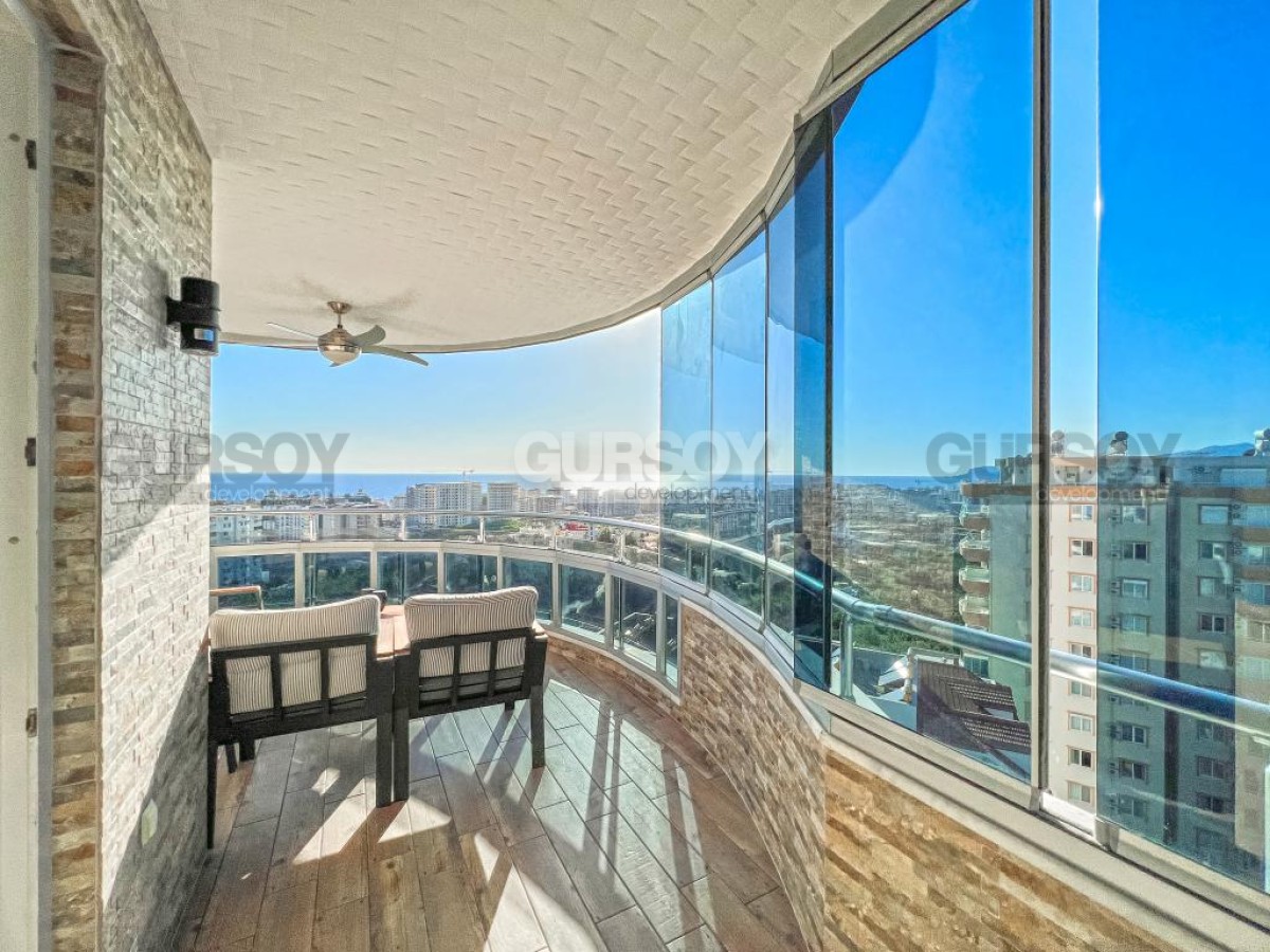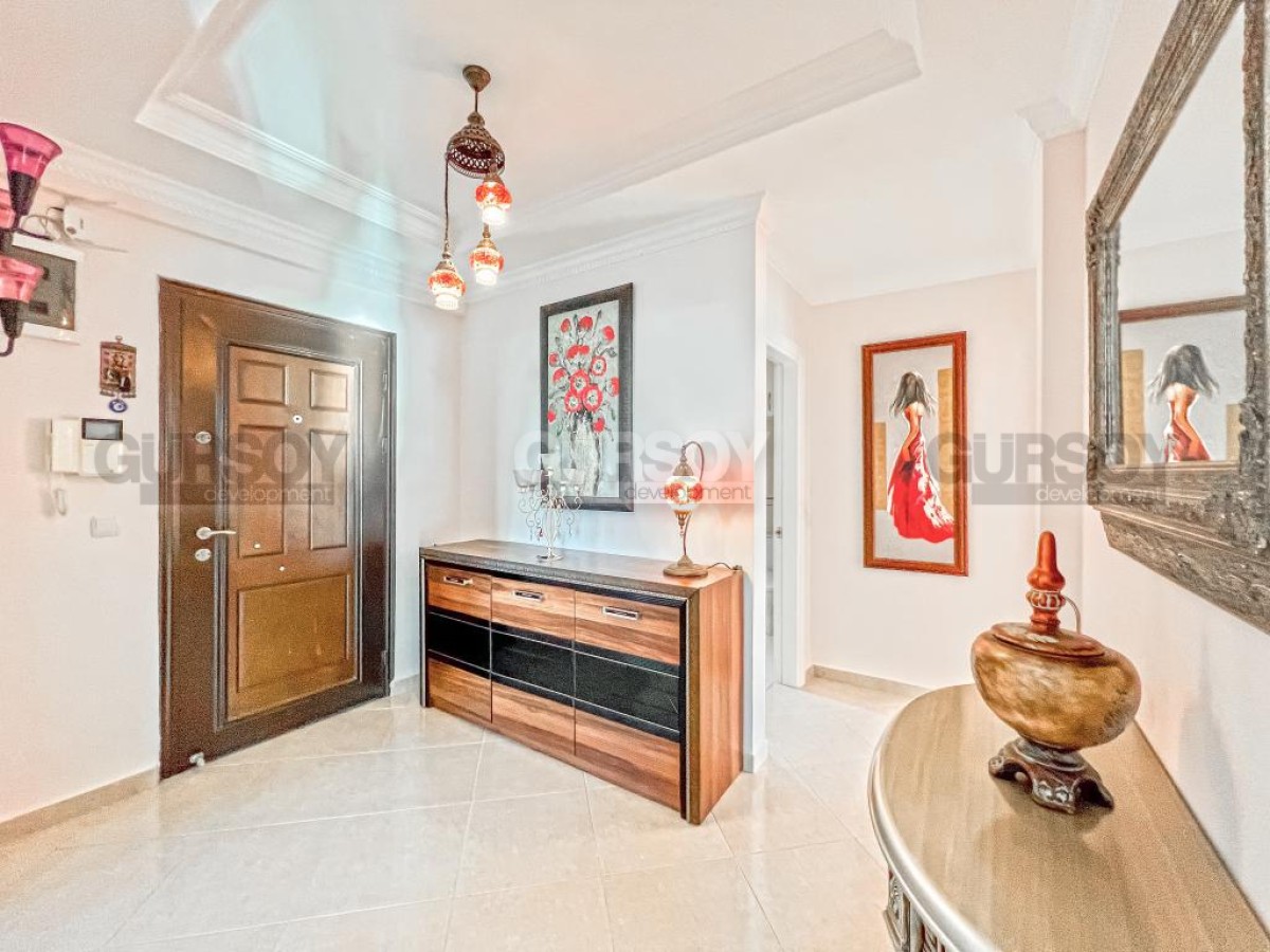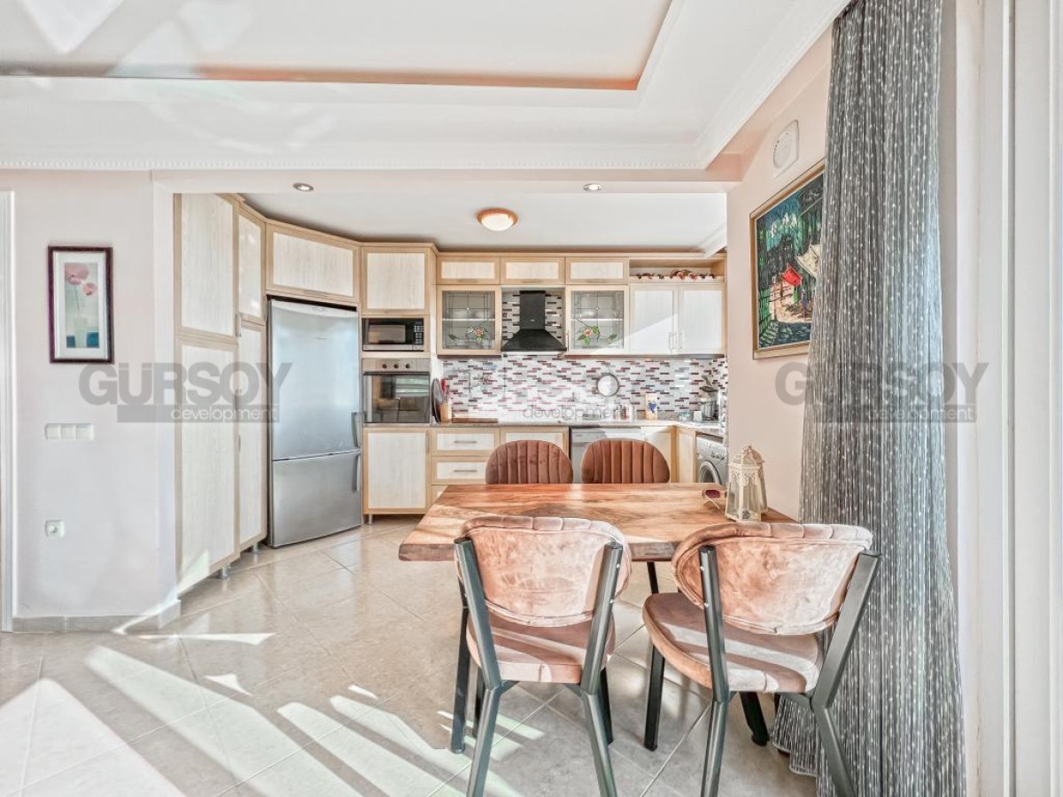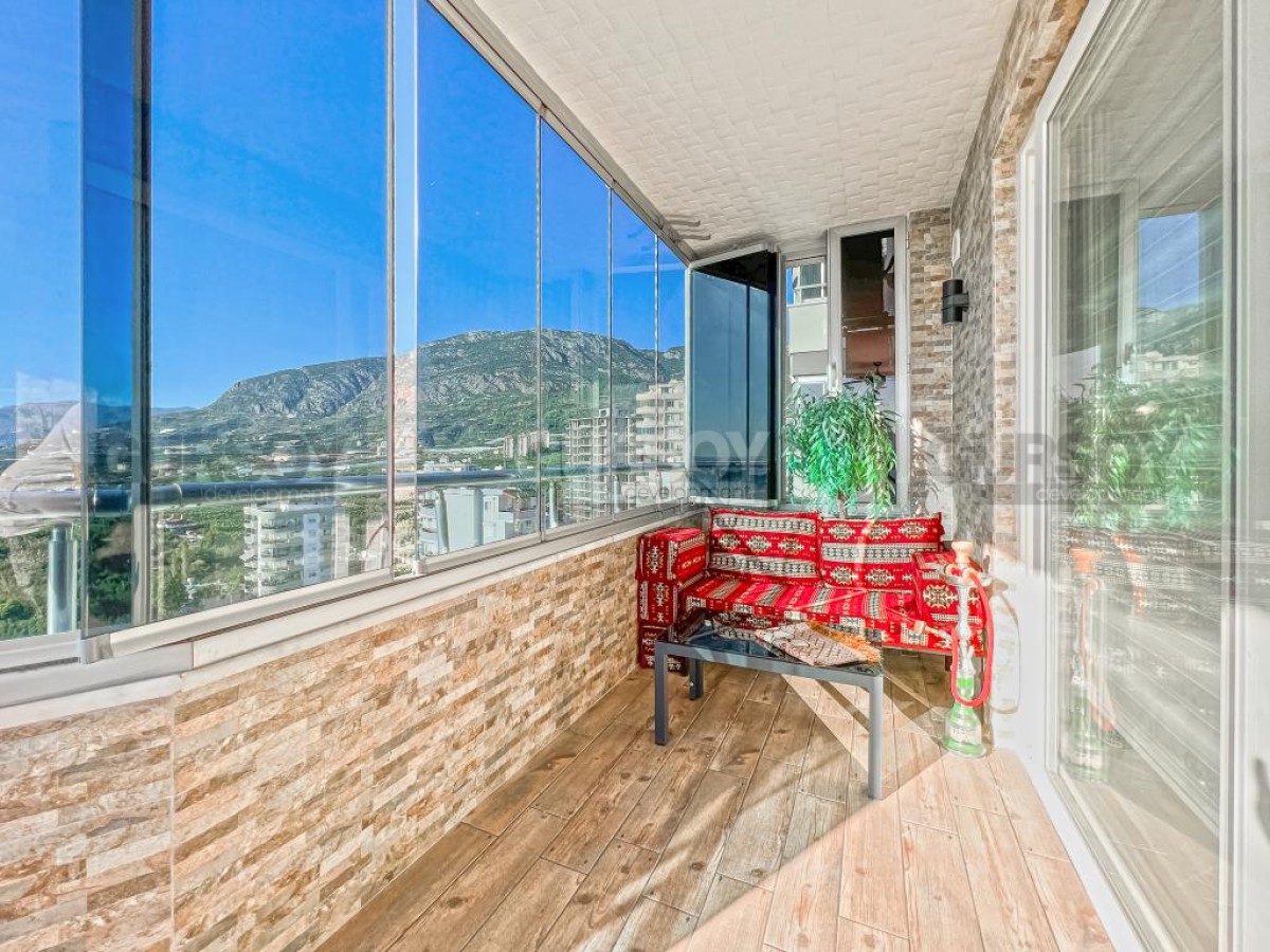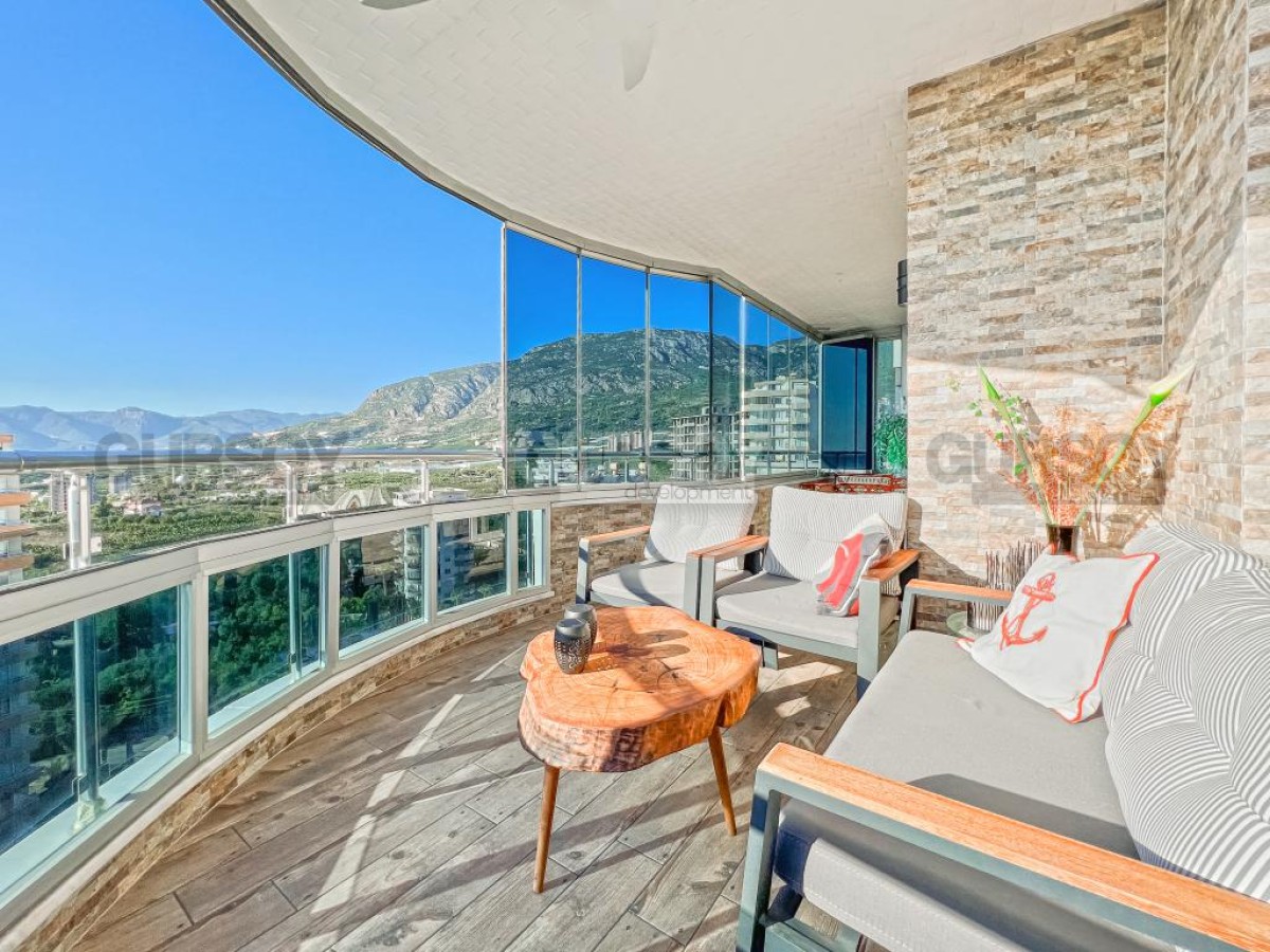 В этом разделе предлагаем обратить внимание на благоустроенную, готовую для проживания квартиру на 10м этаже в популярном районе Аланьи - Махмутлар. Просторная, общей площадью 120 м2, она состоит из кухни открытого типа, салона, двух спален, двух санузлов и двух застекленных балконов с видом на море и горы. Квартира - светлая и современная, с теплыми оттенками в интерьере, комфортабельной мебелью, стильными картинами и оригинальными предметами декора. Просторная гостиная укомплектована массивными кожаными креслами, диваном, комодом, книжным шкафом и деревянным обеденным столом, с мягкими стульями. Практичный кухонный уголок оснащен холодильником, стиральной и посудомоечной машинами и духовым шкафом. В спальнях установлены кровати, письменные столы, тумбы и гардеробные шкафы, а на балконах организованы комфортные зоны отдыха, располагающие к приятному времяпровождению и наслаждению панорамами моря и гор.