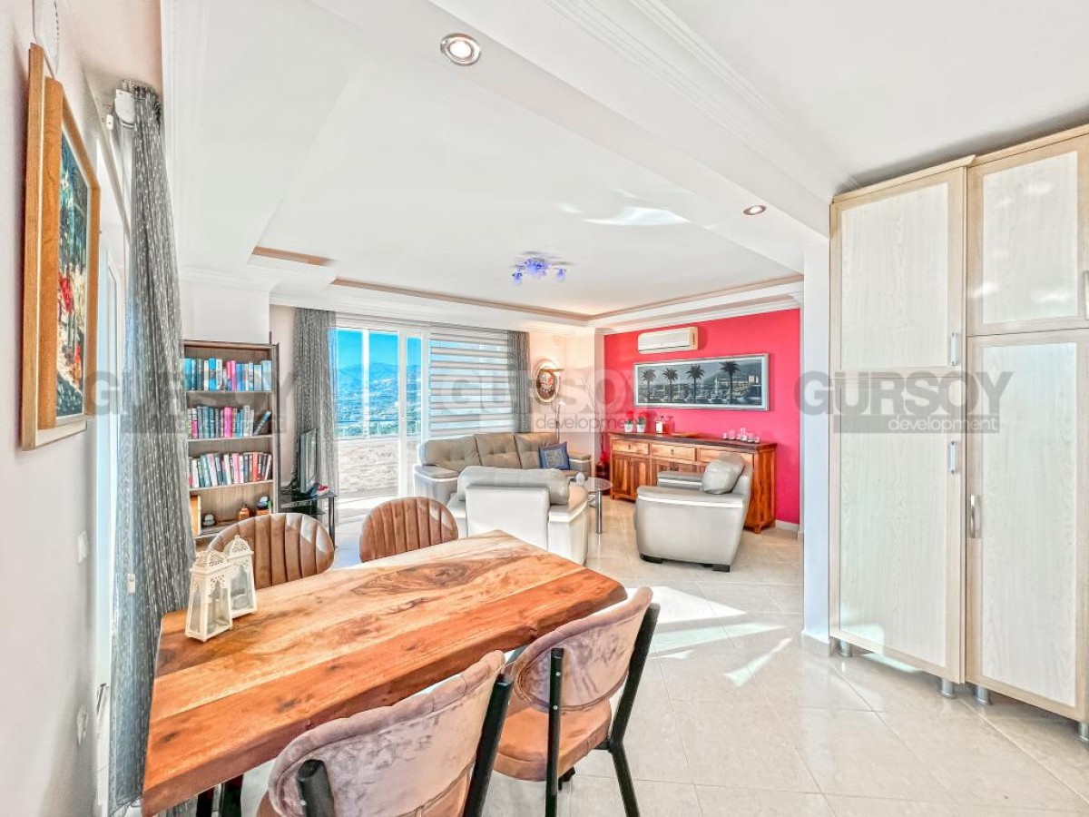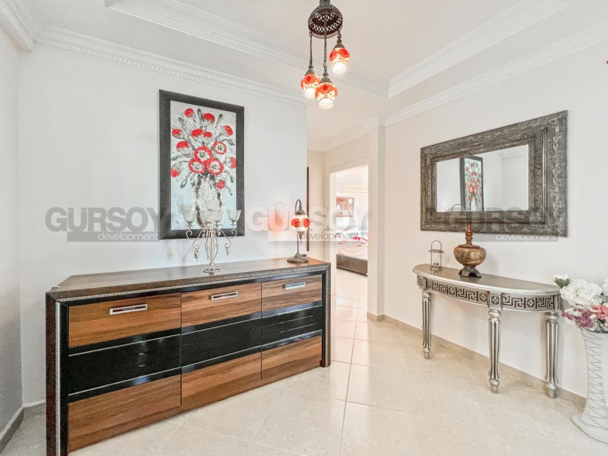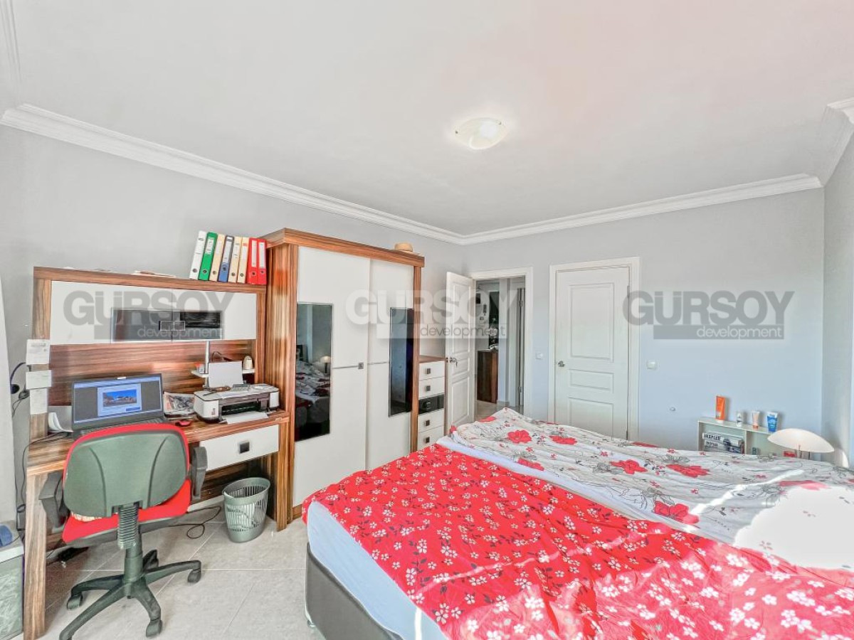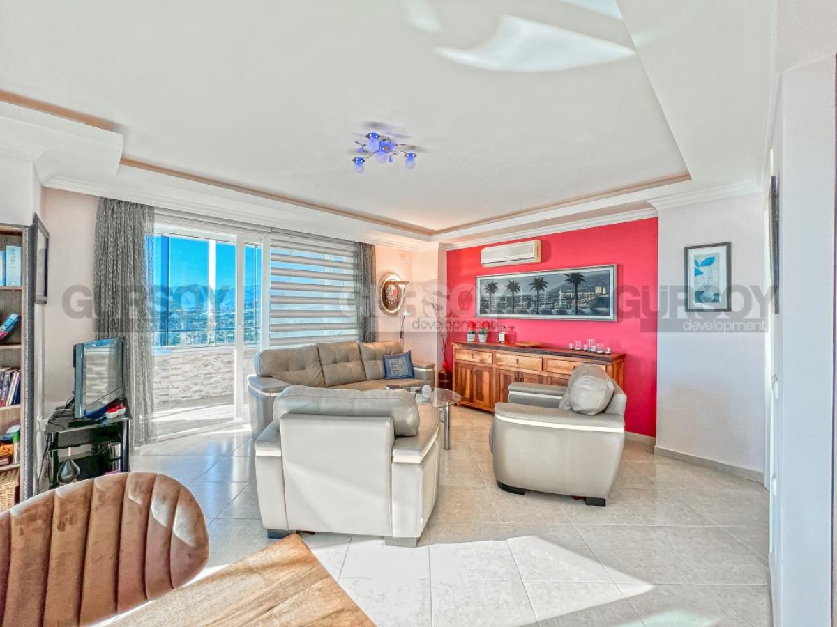 В этом разделе предлагаем обратить внимание на благоустроенную, готовую для проживания квартиру на 10м этаже в популярном районе Аланьи - Махмутлар. Просторная, общей площадью 120 м2, она состоит из кухни открытого типа, салона, двух спален, двух санузлов и двух застекленных балконов с видом на море и горы. Квартира - светлая и современная, с теплыми оттенками в интерьере, комфортабельной мебелью, стильными картинами и оригинальными предметами декора. Просторная гостиная укомплектована массивными кожаными креслами, диваном, комодом, книжным шкафом и деревянным обеденным столом, с мягкими стульями. Практичный кухонный уголок оснащен холодильником, стиральной и посудомоечной машинами и духовым шкафом. В спальнях установлены кровати, письменные столы, тумбы и гардеробные шкафы, а на балконах организованы комфортные зоны отдыха, располагающие к приятному времяпровождению и наслаждению панорамами моря и гор.