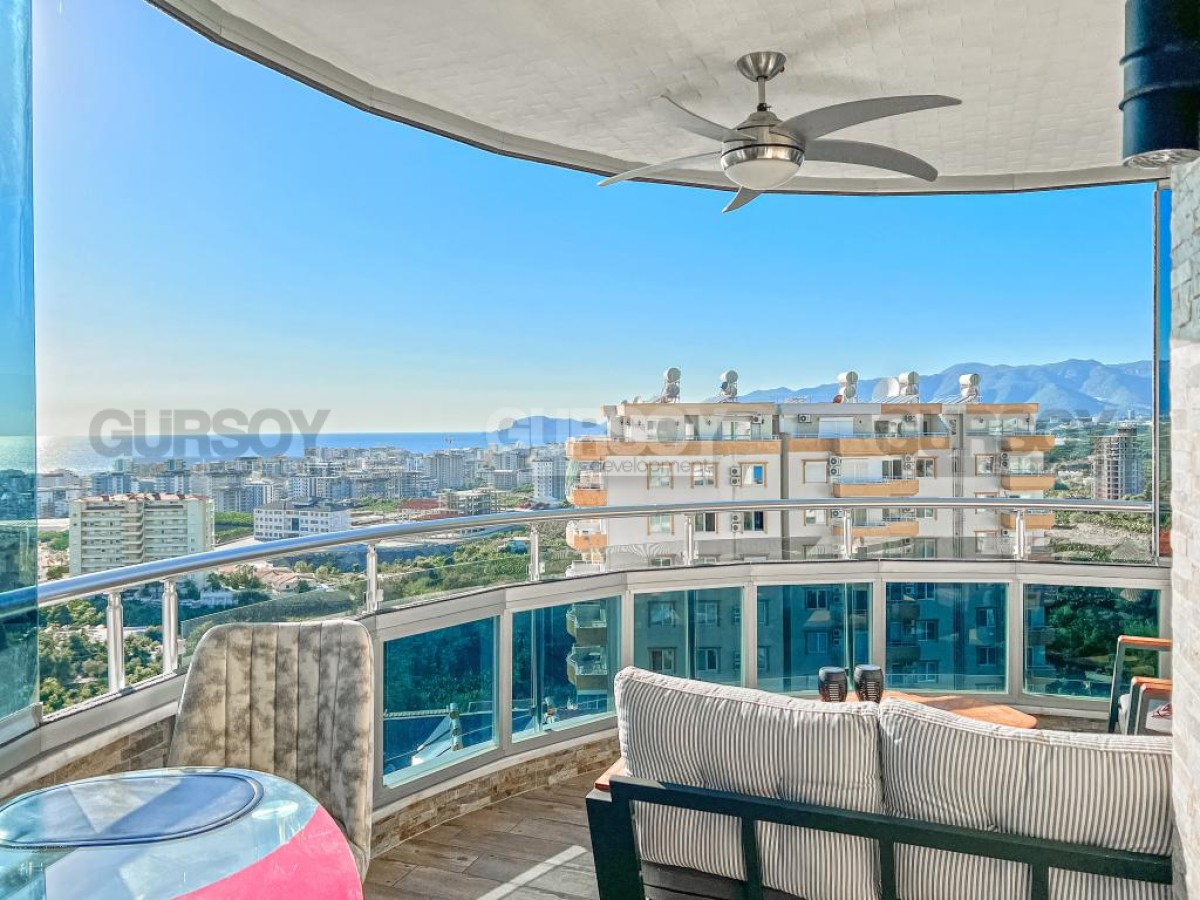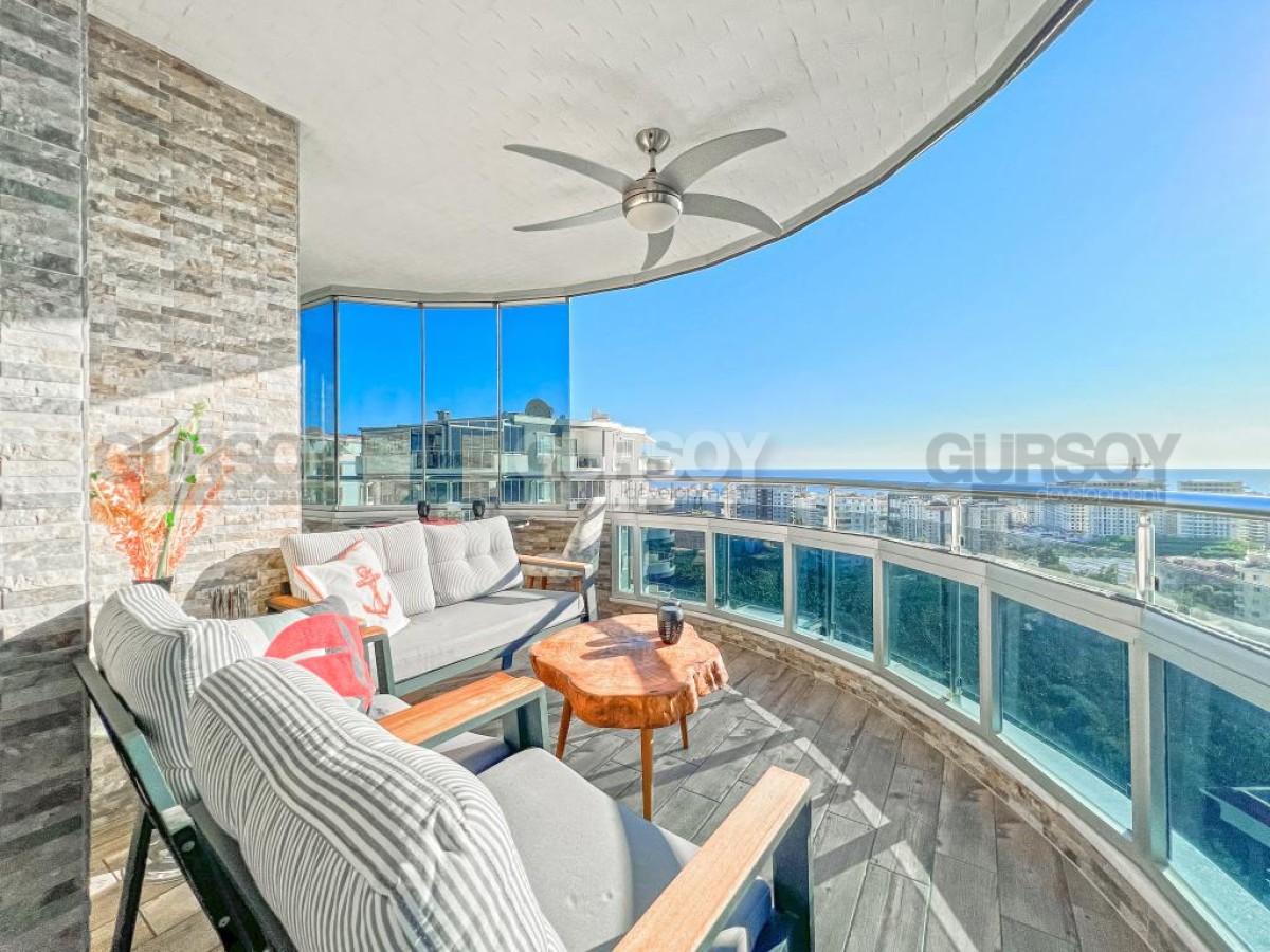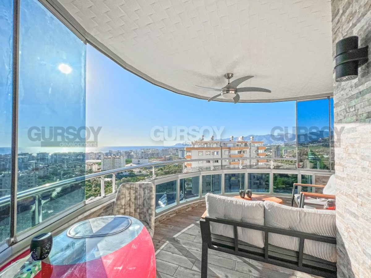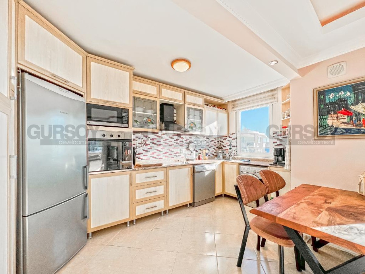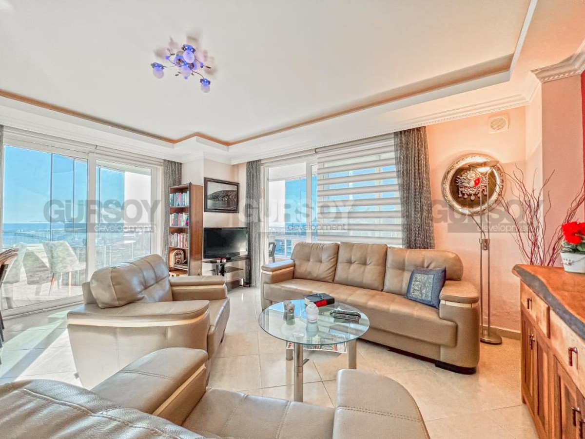 В этом разделе предлагаем обратить внимание на благоустроенную, готовую для проживания квартиру на 10м этаже в популярном районе Аланьи - Махмутлар. Просторная, общей площадью 120 м2, она состоит из кухни открытого типа, салона, двух спален, двух санузлов и двух застекленных балконов с видом на море и горы. Квартира - светлая и современная, с теплыми оттенками в интерьере, комфортабельной мебелью, стильными картинами и оригинальными предметами декора. Просторная гостиная укомплектована массивными кожаными креслами, диваном, комодом, книжным шкафом и деревянным обеденным столом, с мягкими стульями. Практичный кухонный уголок оснащен холодильником, стиральной и посудомоечной машинами и духовым шкафом. В спальнях установлены кровати, письменные столы, тумбы и гардеробные шкафы, а на балконах организованы комфортные зоны отдыха, располагающие к приятному времяпровождению и наслаждению панорамами моря и гор.