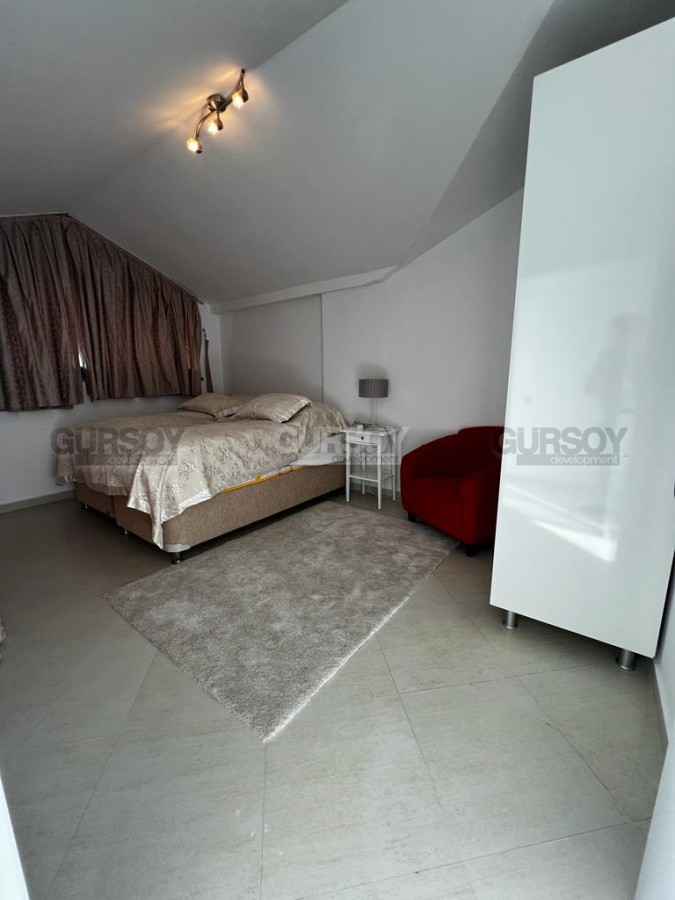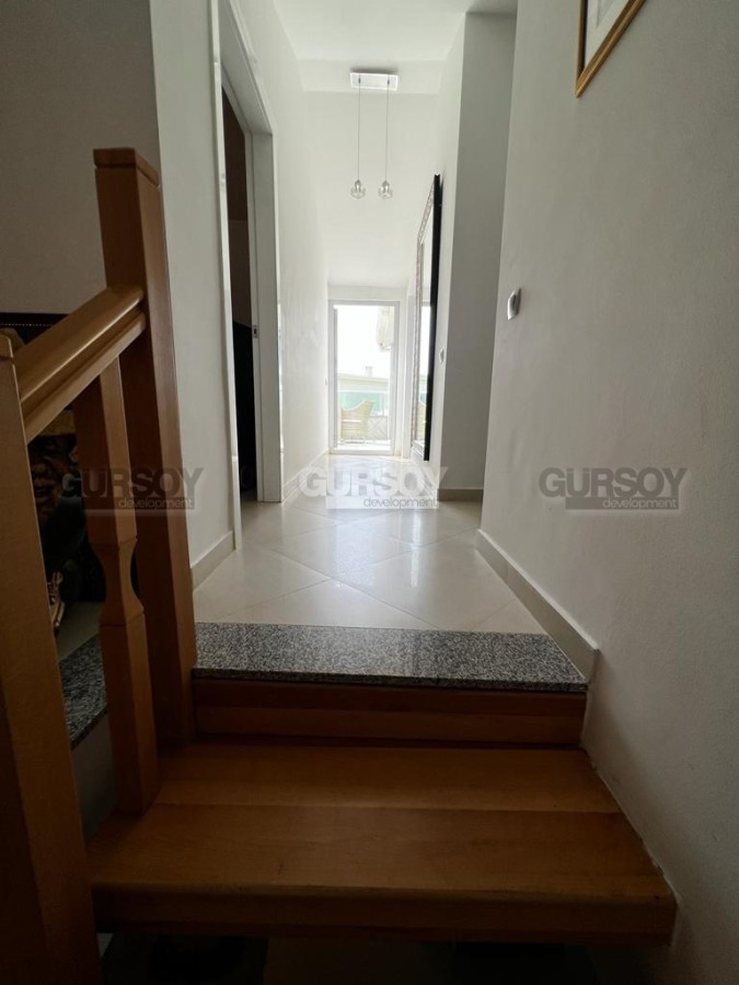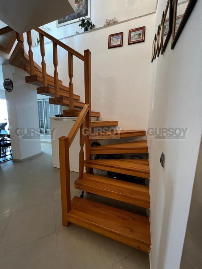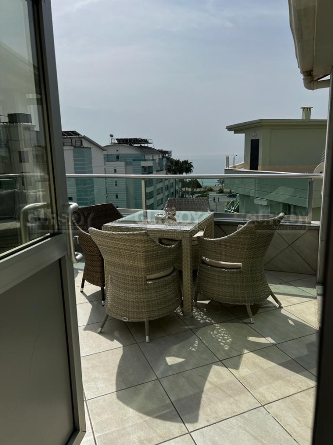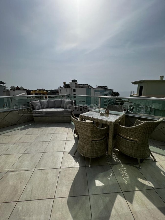Представляется на продажу просторный дуплекс площадью 170 квадратных метров и планировкой 4+1. Квартира занимает четвертый и пятый этажи здания и предлагается со встроенной мебелью и бытовой техникой. Большим преимуществом этой недвижимости являются террасы и окна, открывающие великолепный вид на море и горы.