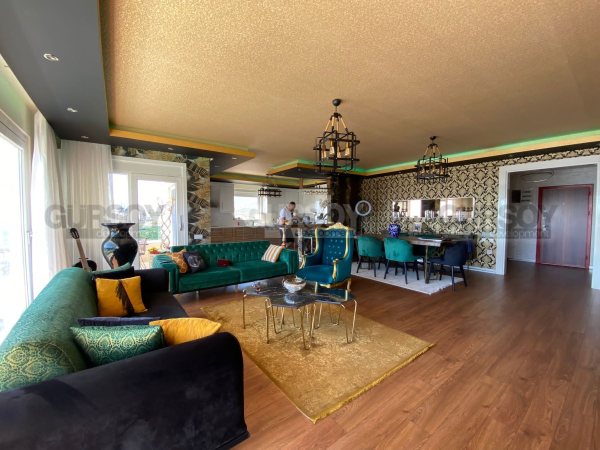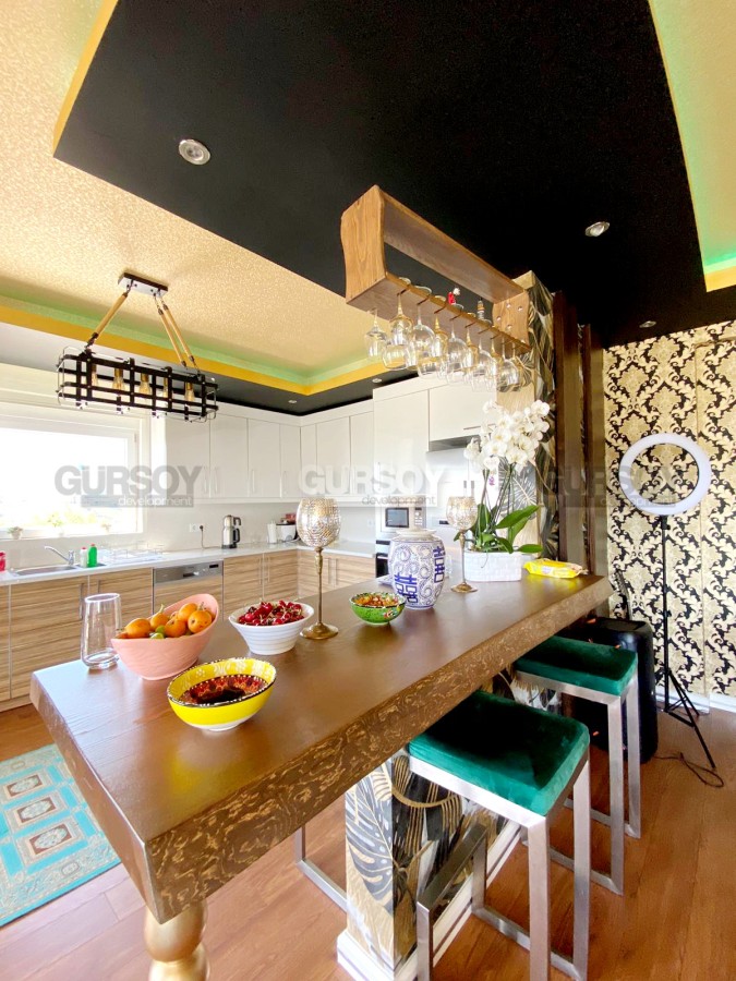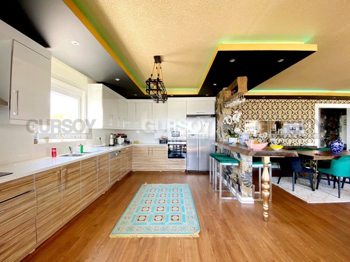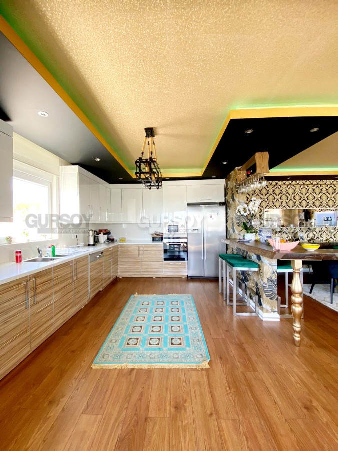 Агентства недвижимости Gursoy Development представляет пентхаус по типу виллы 3+1, 300 м2, площадь земельного участка 700м2. Вилла расположена в районе Каргыджак, который находится в 14 км от центра курортного города. Каргыджак славится своими панорамными видами на море, город и прекрасными пляжами.