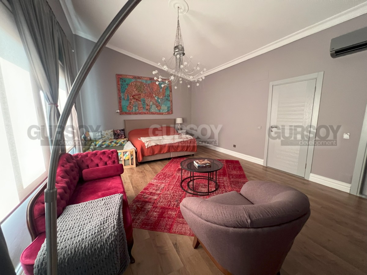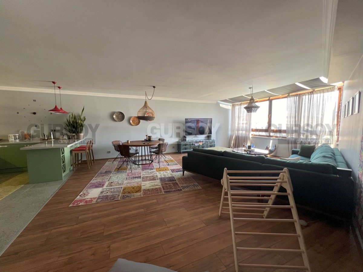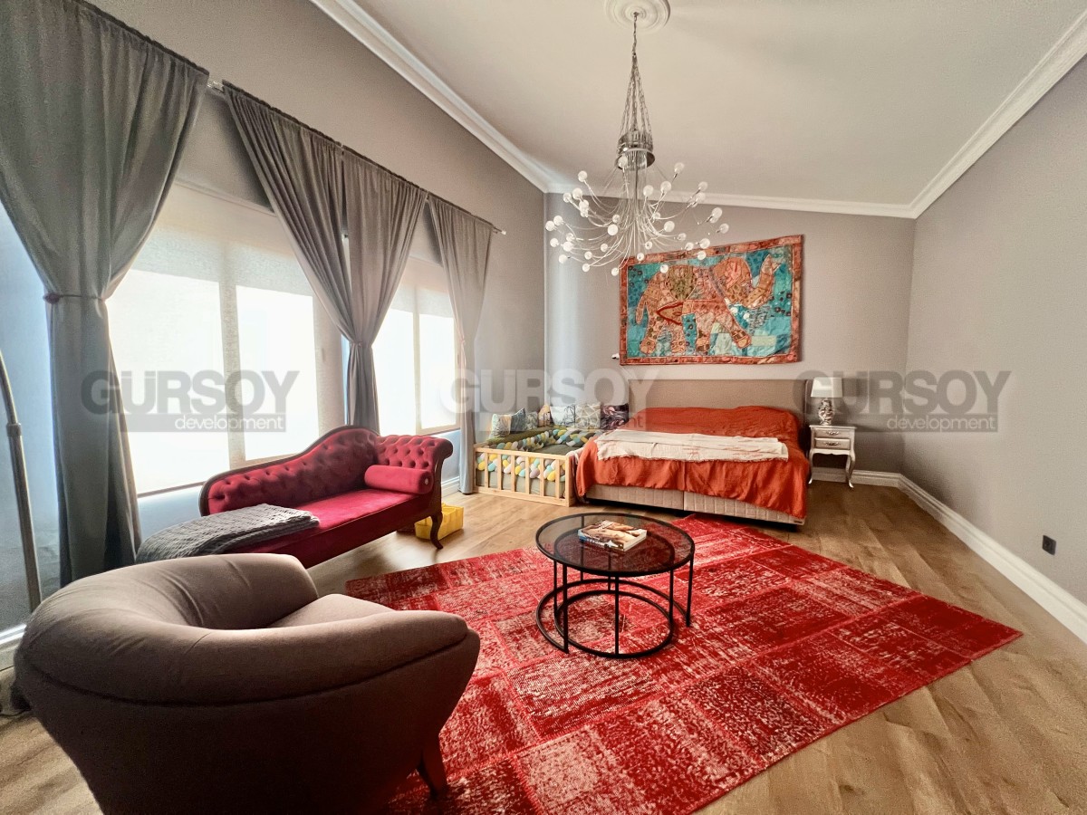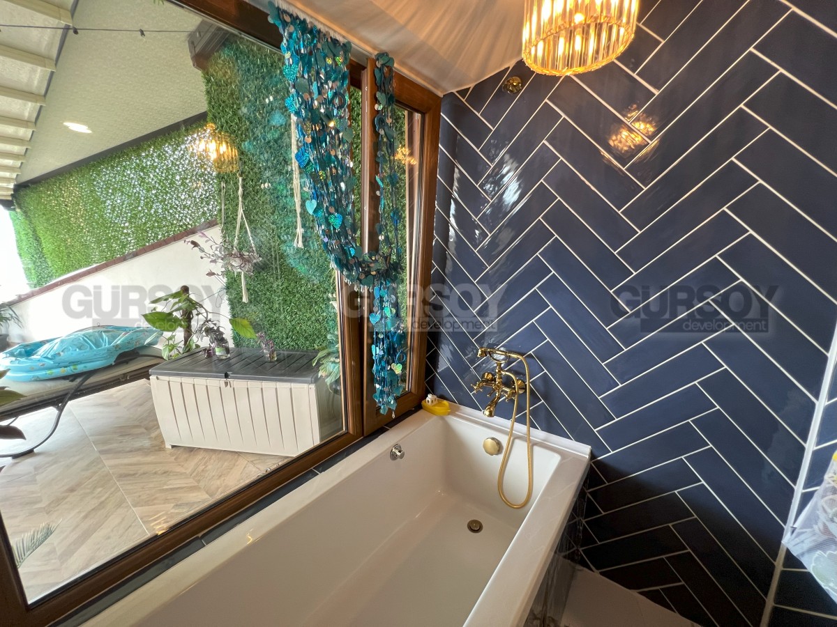 На продажу выставлена двухуровневая квартира планировкой 3+1, расположенная в одном из самых живописных районов Аланьи — Тосмур, всего в нескольких шагах от реки Димчай. Общая площадь апартаментов составляет 250 м2. В квартире произведен капитальный ремонт с использованием премиальных материалов и инженерных решений: инфракрасный подогрев полов во всех комнатах, тепло-, звуко- и гидроизоляция, полностью обновлённая электросеть, что позволяет экономить до 30% на счетах. Интерьер выполнен в индивидуальном стиле с акцентом на комфорт и эстетику — деревянные полы, современная кухня высокого класса с каменной столешницей, умный дом, встроенные системы хранения и гардеробная. В квартире две ванные комнаты, одна из которых оснащена и душем, и ванной. Просторная терраса с раздвижной крышей открывает захватывающий вид на море, горы и реку. Все внешние блоки кондиционеров вынесены на крышу, что сохраняет тишину и эстетику фасада.