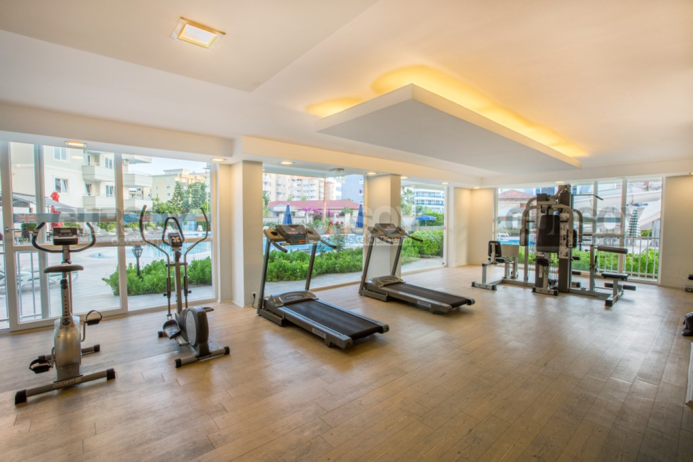 Квартира полностью меблирована и оборудована всем необходимым, включая котельную систему, что обеспечивает комфортное проживание. В дополнение к этому, на территории дома есть два лифта, бассейн, аквагорки, фитнес-центр, сауна, игровая комната, теннисный корт, зона для барбекю и большой сад с тропическими растениями, фруктовыми деревьями и прудом. Ресторан у бассейна предлагает вкусные блюда.