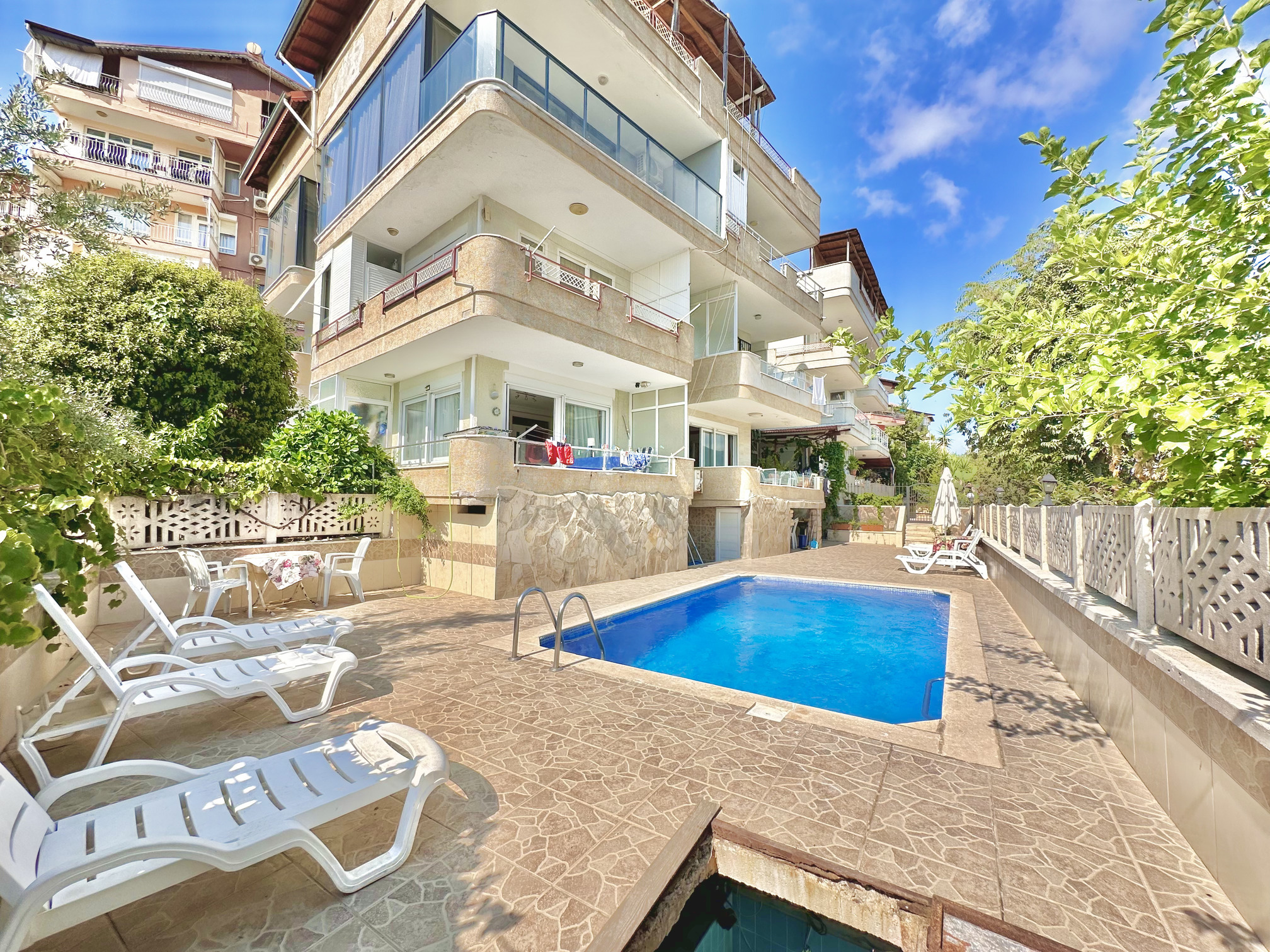 Дом с ухоженной территорией, садом и бассейном, что является большим преимуществом для центральной части города.