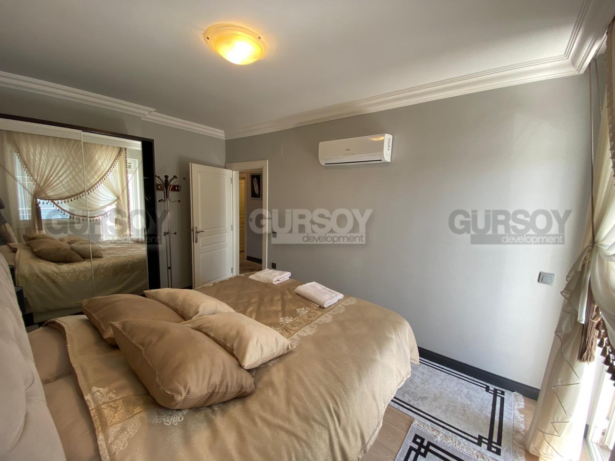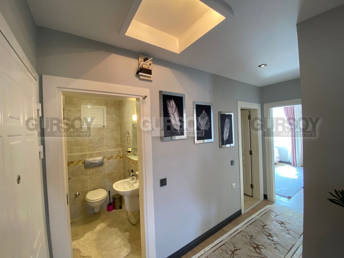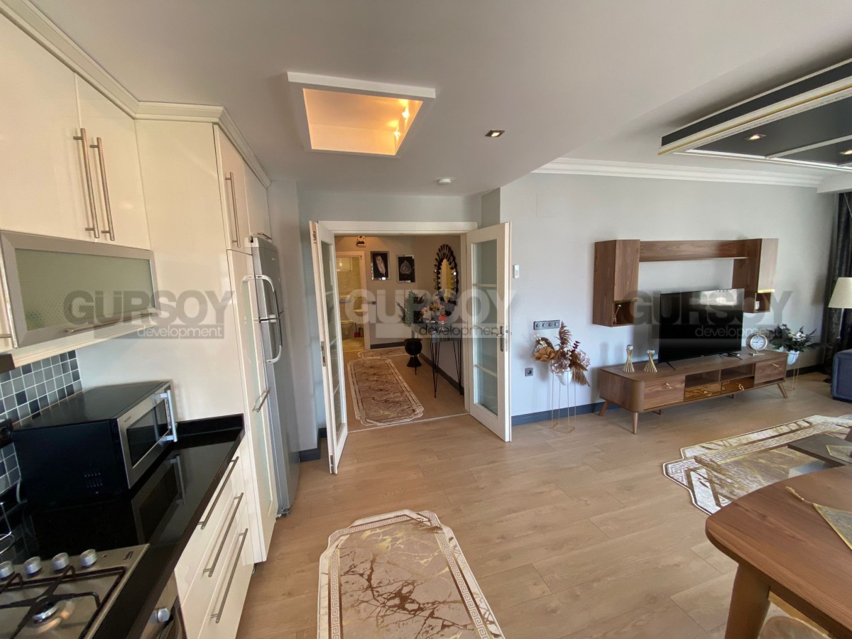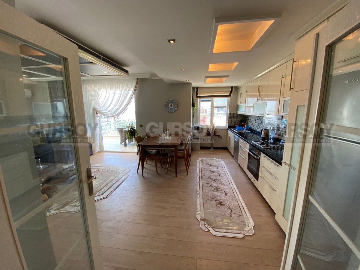 Квартира 2+1, 130м2 имеет: две спальни, гостиную с кухней открытого типа, 2 ванные комнаты, два балкона. Окна квартиры выходят на южную сторону. Квартира предлагается со всей необходимой техникой и мебелью, возможно сразу заехать и жить.