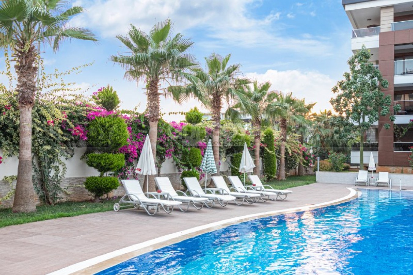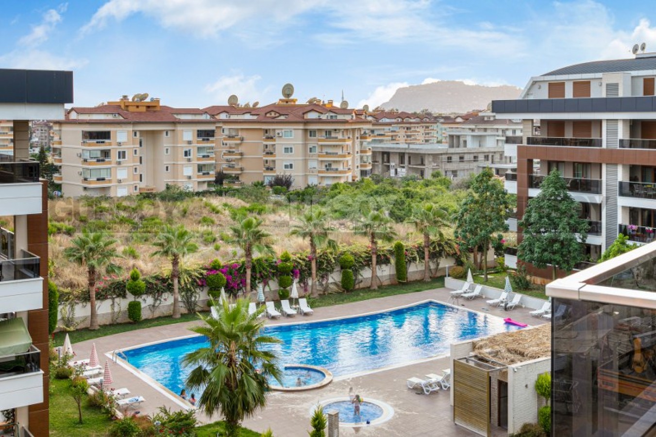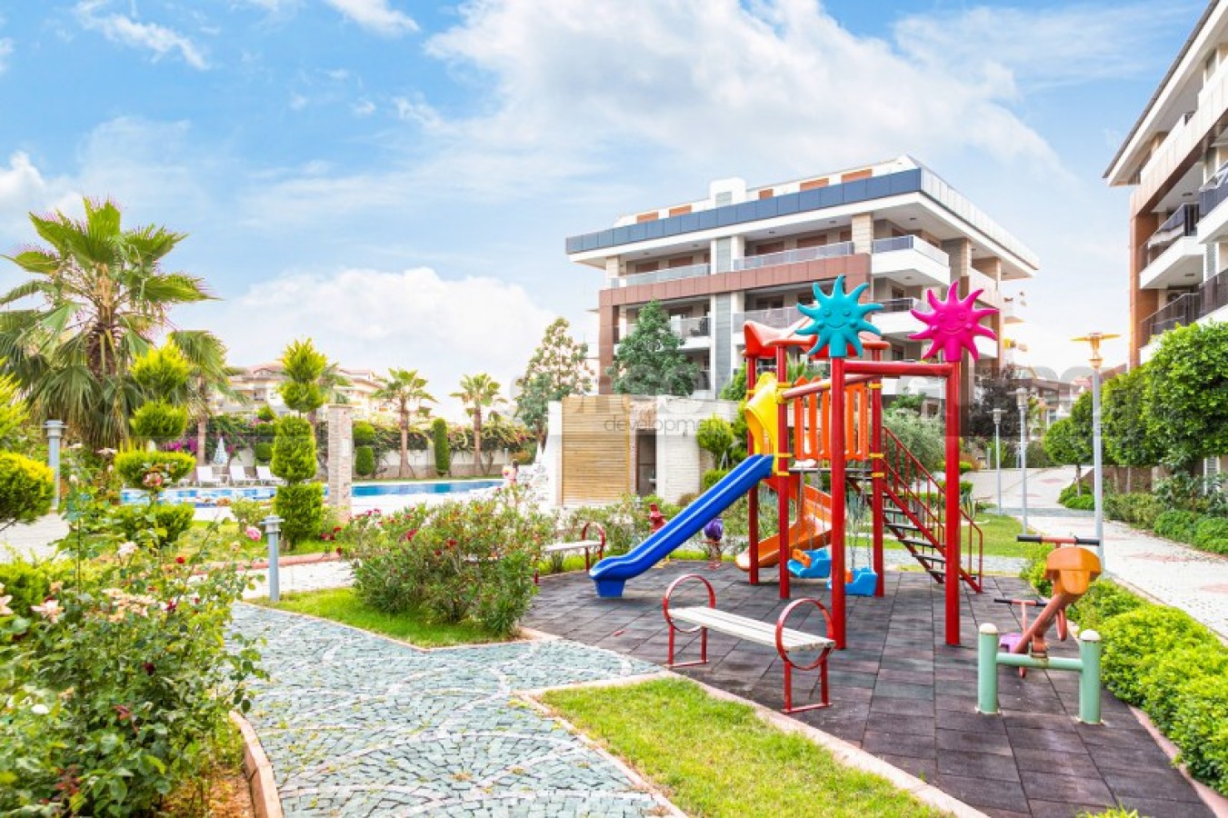 Квартира находится на 4 этаже малоэтажной резиденции, которая является частью большого комплекса с богатой инфраструктурой. Комплекс включает 4 жилых блока, здесь большая ухоженная территория. У комплекса отличная локация – 1300м до пляжа, в шаговой доступности магазины и кафе.