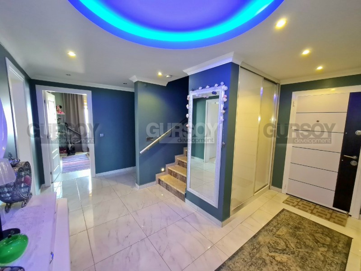 Дублекс представлен со всей необходимой мебелью и техникой, возможно сразу заехать и жить. Планировка квартиры 4+1, 230м2 подразумевает наличие 4х спален, гостиной с кухней открытого типа, 3х ванных комнат и балконов. Окна квартиры выходят в том числе на южную сторону.