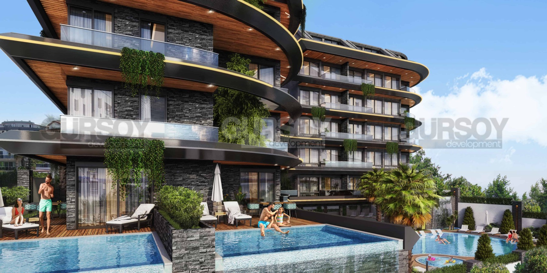 Агентства недвижимости Gursoy Development представляет премиальный проект в районе Кестель, который находится в 7и км от центра курортного города. Он привлекает иностранных инвесторов и отдыхающих прекрасными пейзажами средиземноморской природы, хвойными рощами, садами цитрусовых деревьев, прекрасными пляжами.