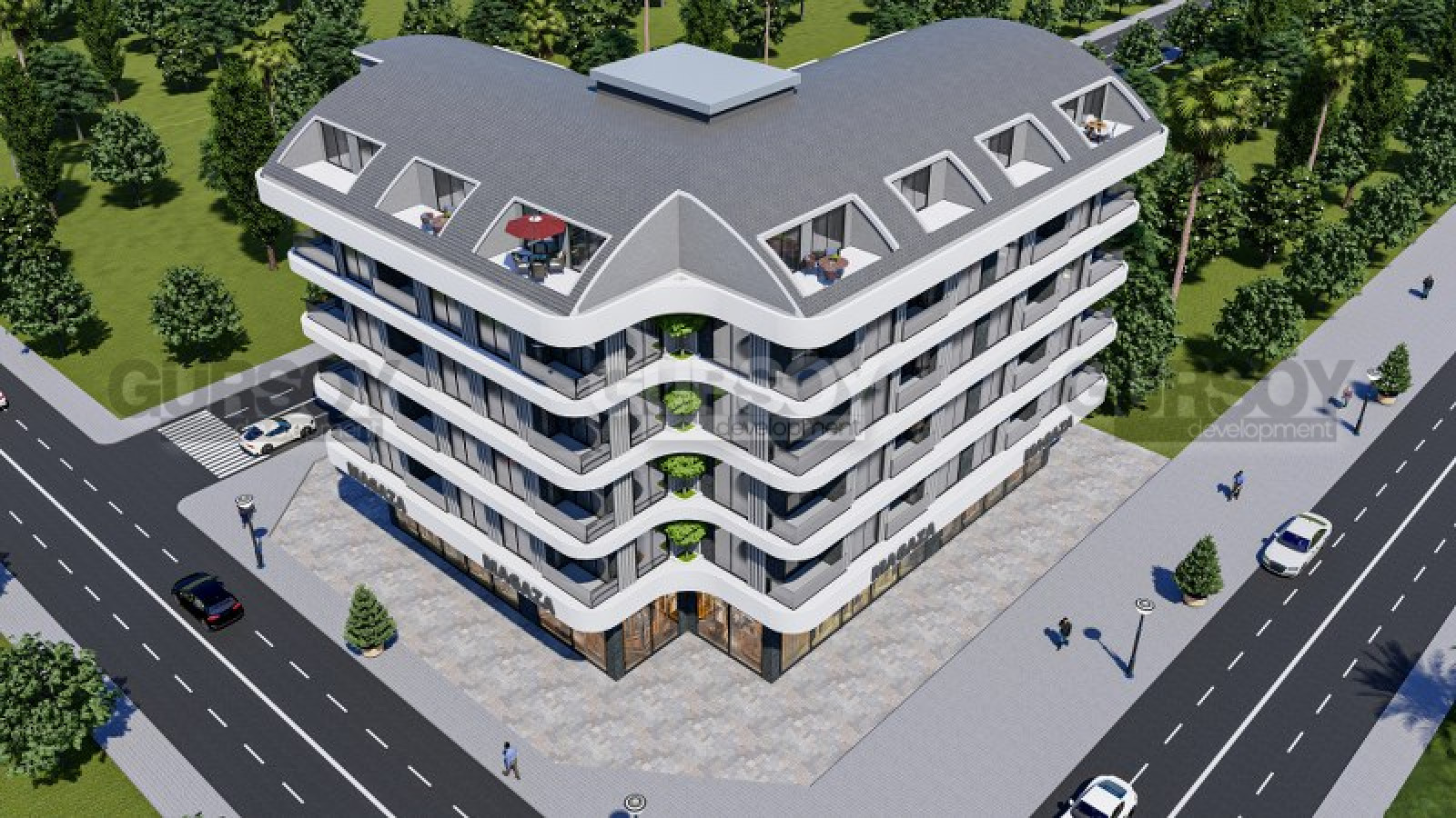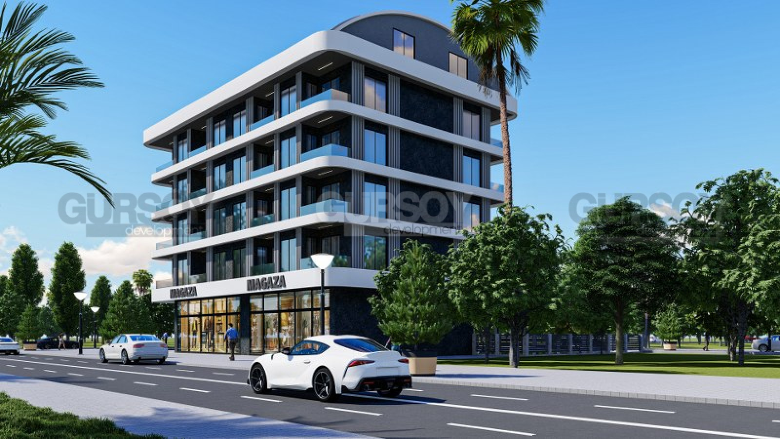 Агентство недвижимости Gursoy Development представляет премиальный проект в Газипаше. Комплекс состоит из 4х этажной резиденции и объектов инфраструктуры, занимает площадь 1304м² на территории имеется бассейн 85 м². Всего в доме 44 квартиры планировкой: