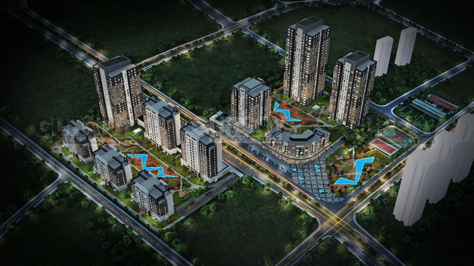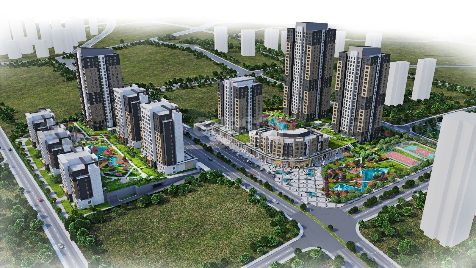 Проект состоит из 10 зданий различной высоты, достигающих до 27 этажей, и общим числом 724 квартир, предлагаемых в нескольких стилях: 2+1, 3+1 и 4+1. Общая площадь участка составляет 41 000 квадратных метров, 70% которых занимают зеленые насаждения, создавая гармоничную природную обстановку. Также в состав проекта входят 52 коммерческих магазина, расположенных вокруг внешних зданий, чтобы удовлетворить все ваши потребности в покупках.