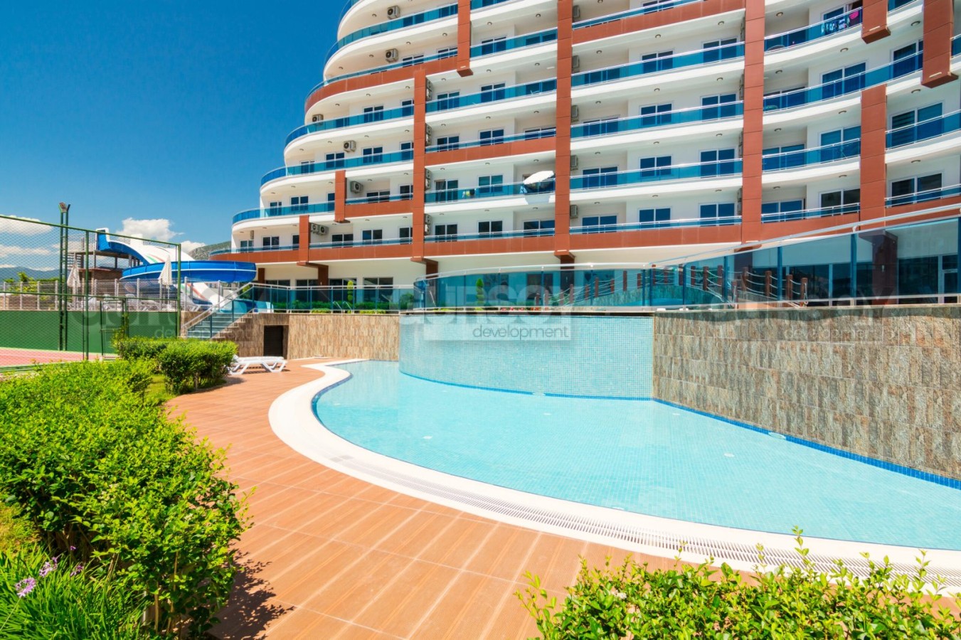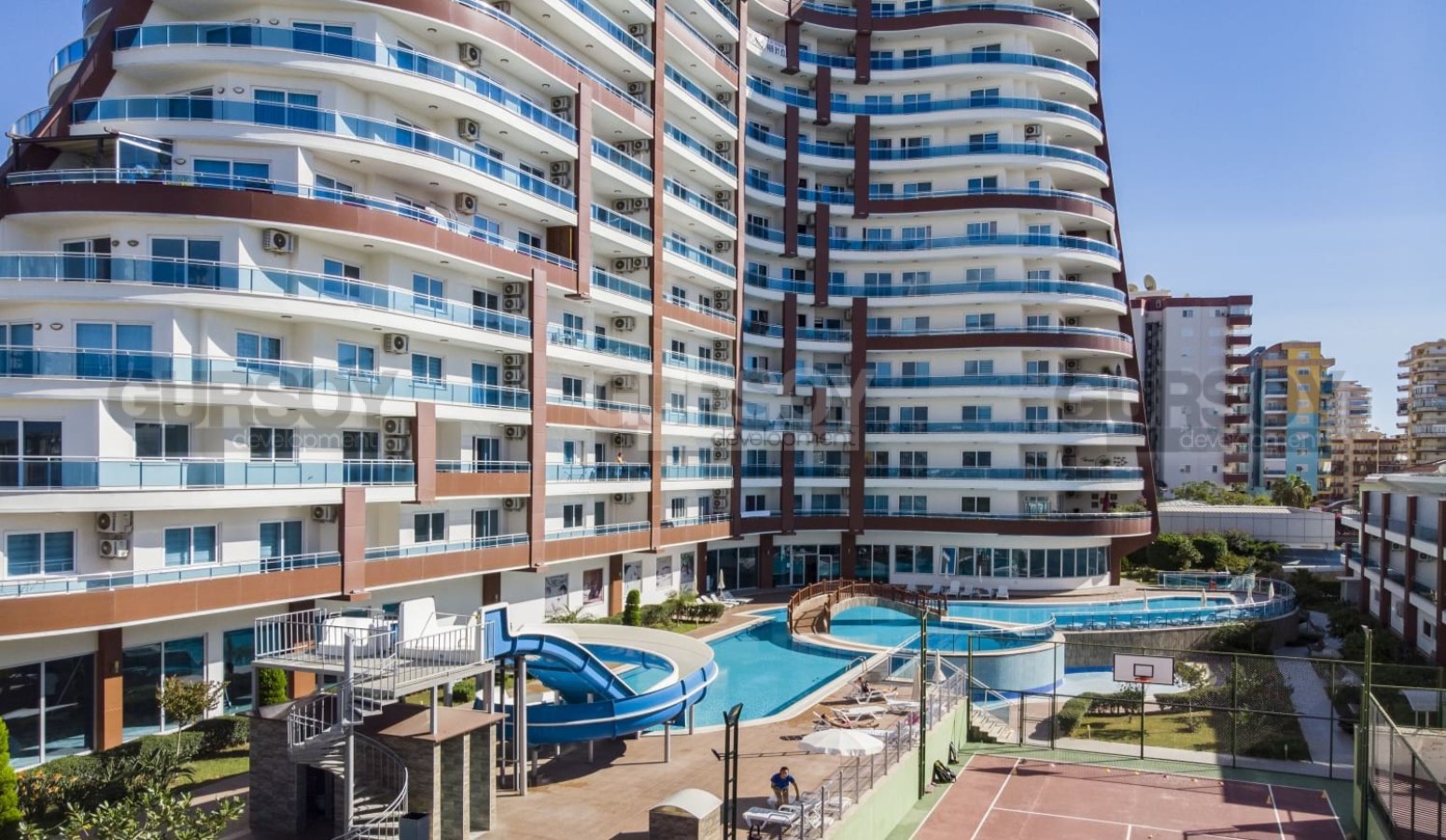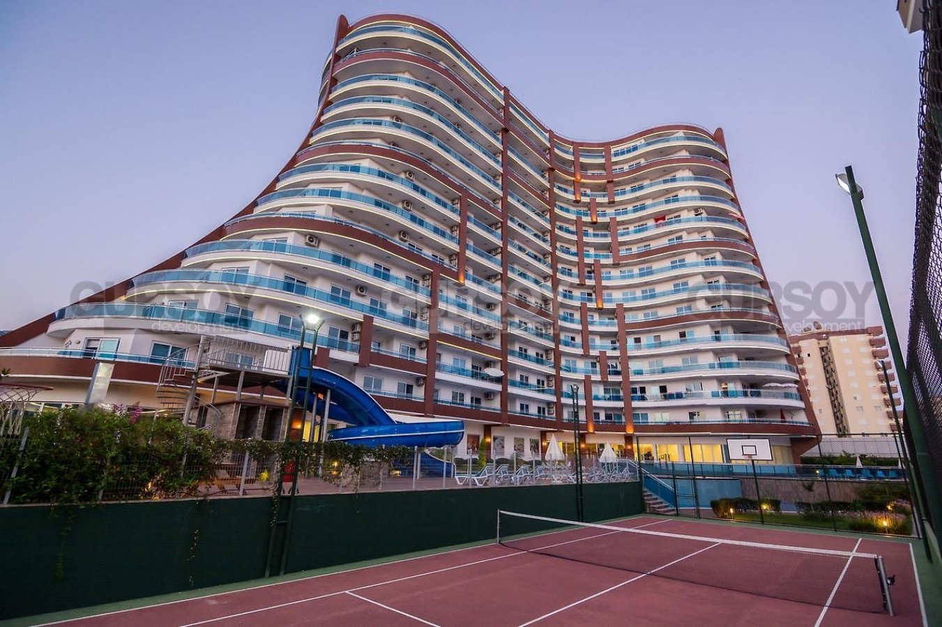 Комплекс отличается великолепной инфраструктурой уровня 5-звездочного отеля. Здесь вы найдете всё для комфортной и насыщенной жизни: открытый бассейн с аквапарком, крытый бассейн с подогревом, зеленую территорию с зоной барбекю, стильное лобби, кинотеатр, СПА-центр с сауной, хамамом, паровой и массажными кабинетами. Для любителей активного образа жизни предусмотрены фитнес-зал и бильярдная. Насладиться вкусными блюдами можно в ресторане на территории комплекса, а для ваших детей предусмотрена игровая комната. Также в комплексе есть парковка и система видеонаблюдения. Территория огорожена и охраняется круглосуточно, что гарантирует вашу безопасность и спокойствие.