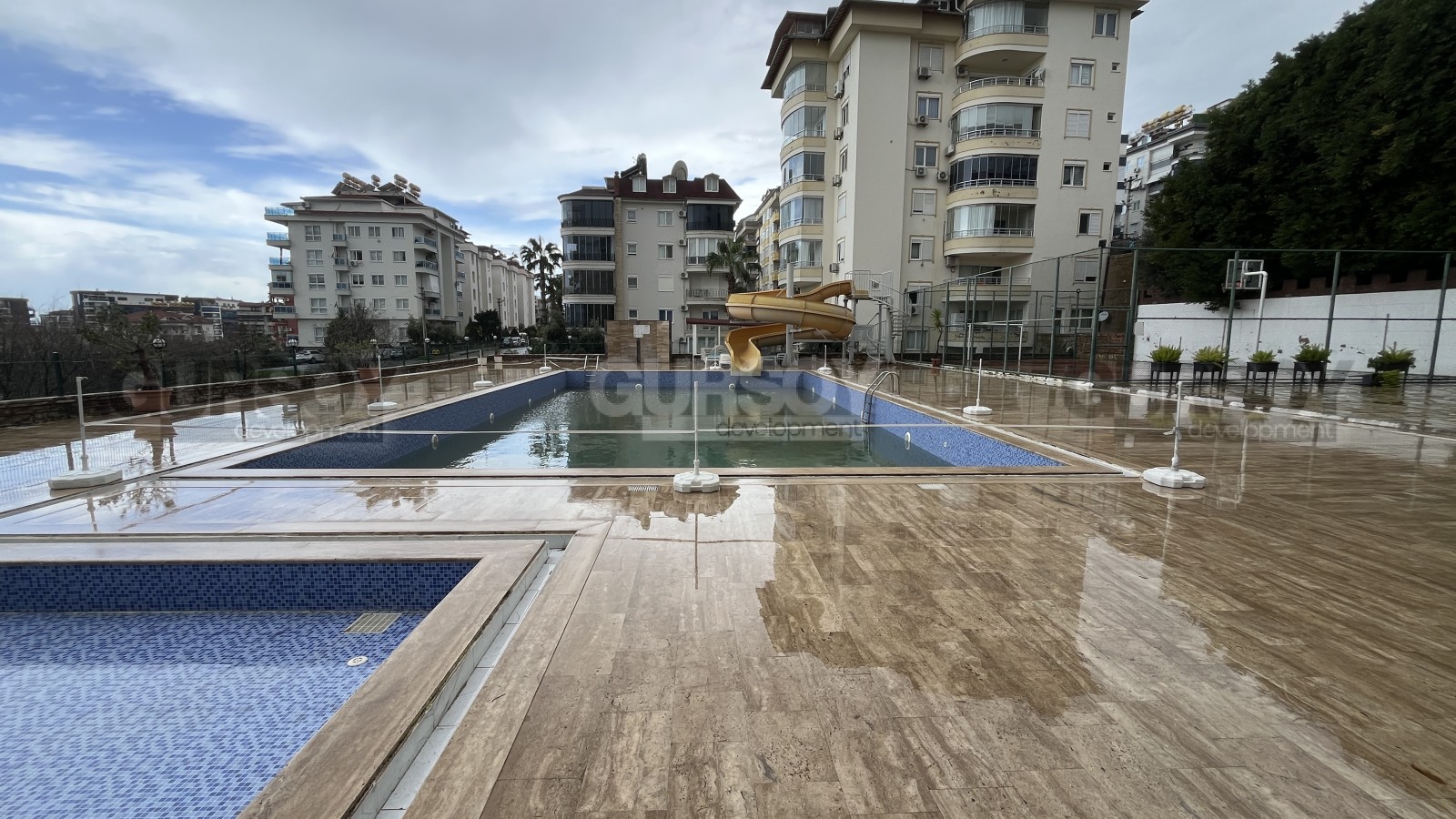 Жилой комплекс предлагает своим жильцам высокий уровень комфорта и удобства. На территории комплекса имеются все необходимые удобства, такие как открытый бассейн, теннисный корт, фитнес-зал, сауна, детская игровая площадка с водными горками и просторная парковка. Прекрасно благоустроенная территория с зелеными садами и зонами для барбекю — идеальные места для отдыха и общения с семьей и друзьями.