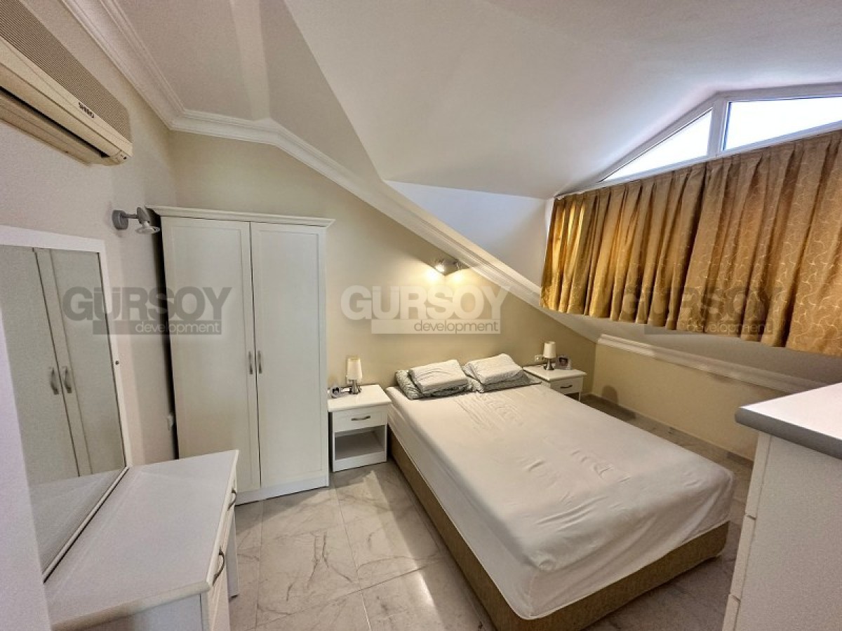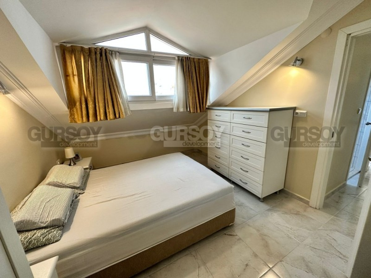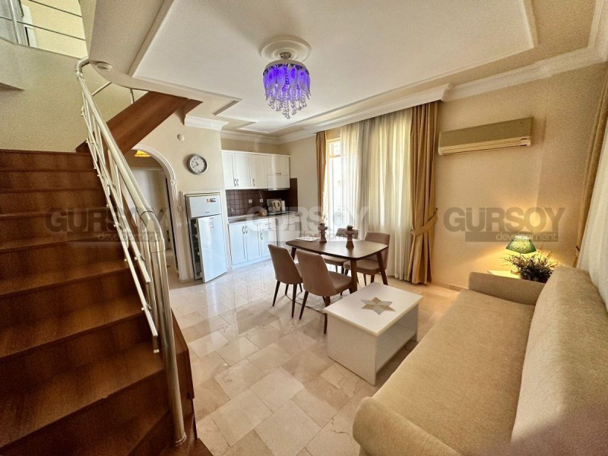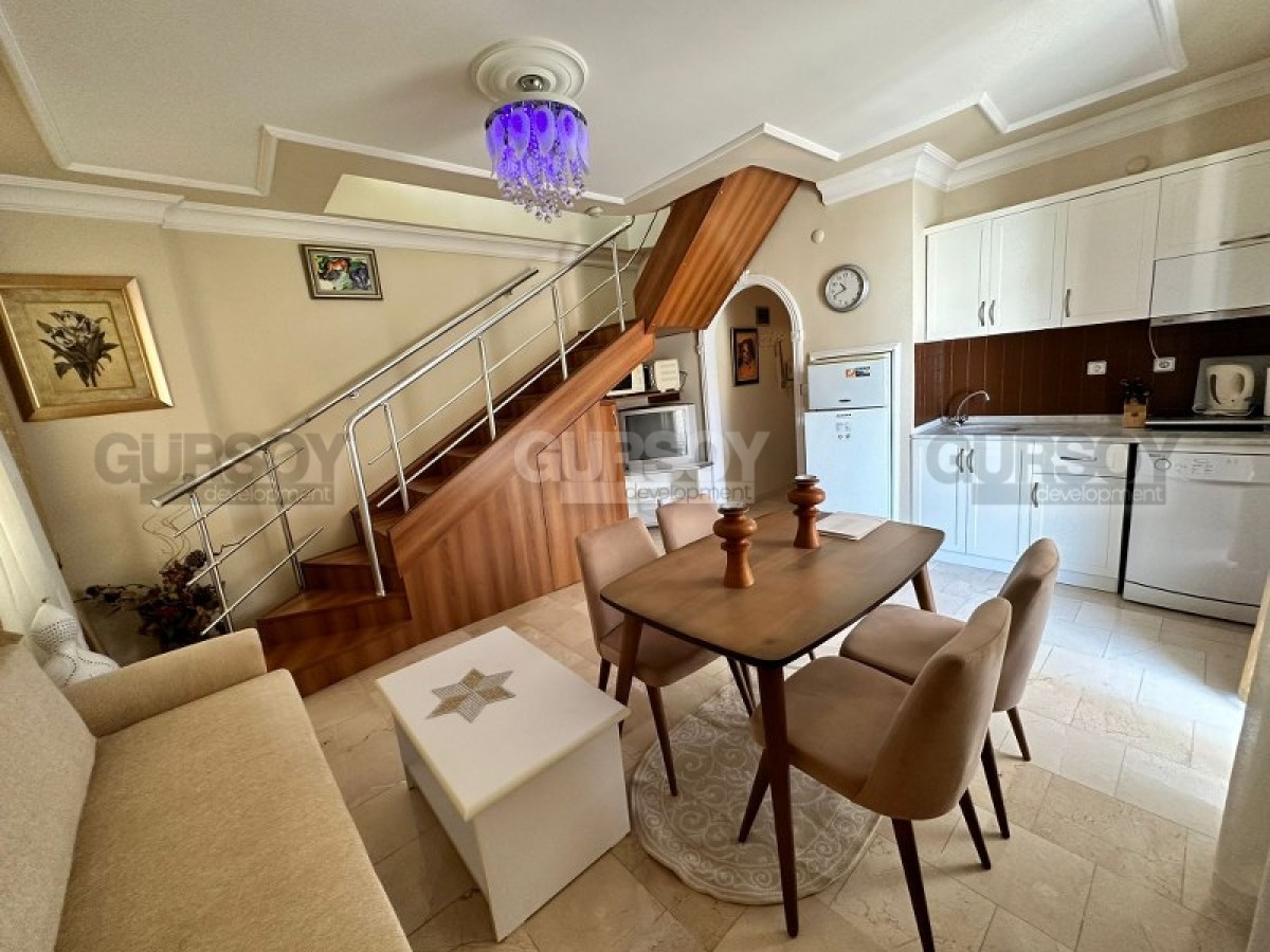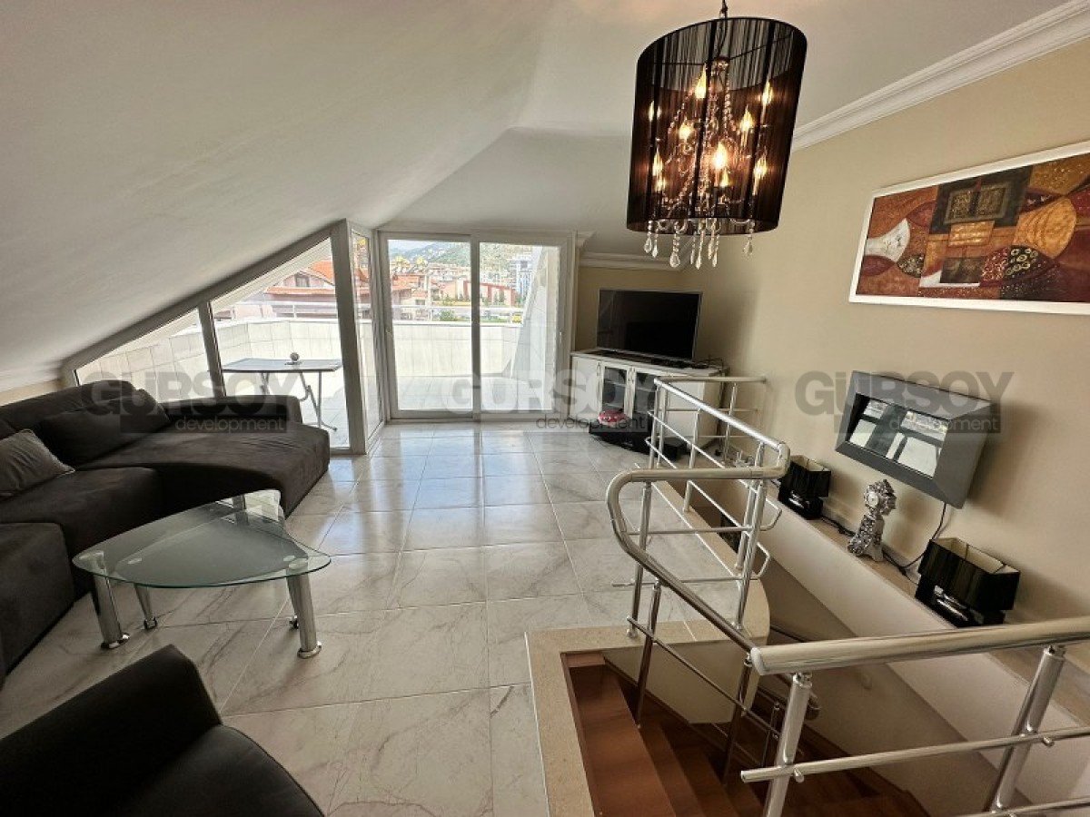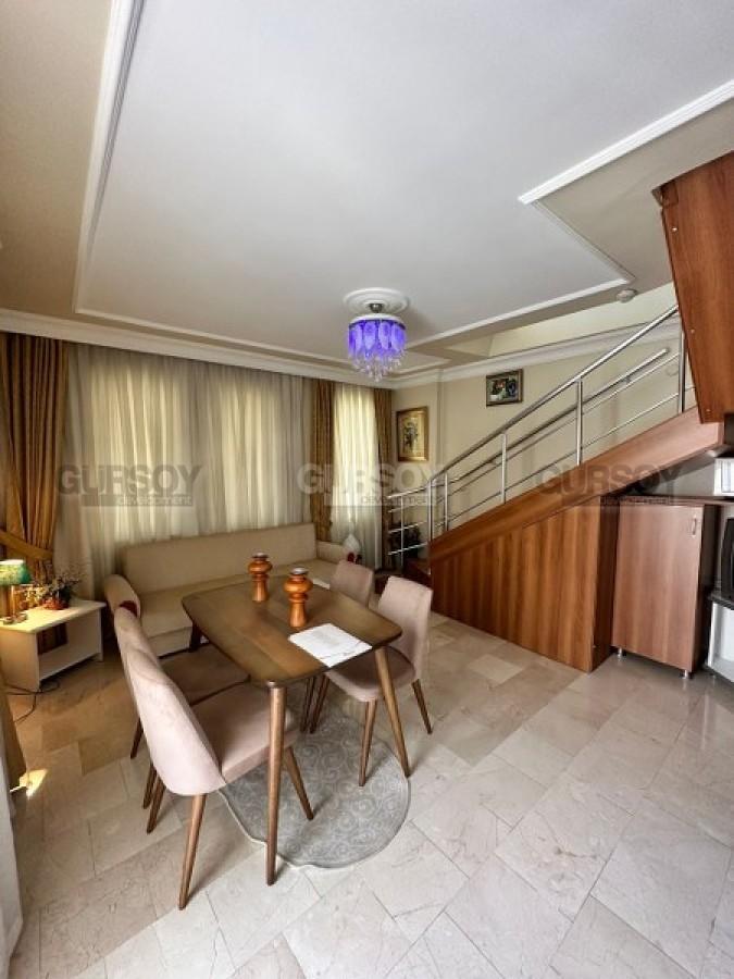Предлагаем вашему вниманию дуплекс 2+1, в центре города Алания. Жилой дом расположен в 750 метрах от моря. Квартира занимает два верхних этажа 5 этажного здания.В планировку апартаментов входит кухня американского типа совмещенная с залом, на втором этаже зона отдыха и две спальни. В квартире два оборудованных санузла и два балкона. Квартира продается полностью меблированной, что обеспечит быстрый переезд новым владельцам. На огороженной территории есть бассейн, который приятно вас освежит в жаркие летние дни.