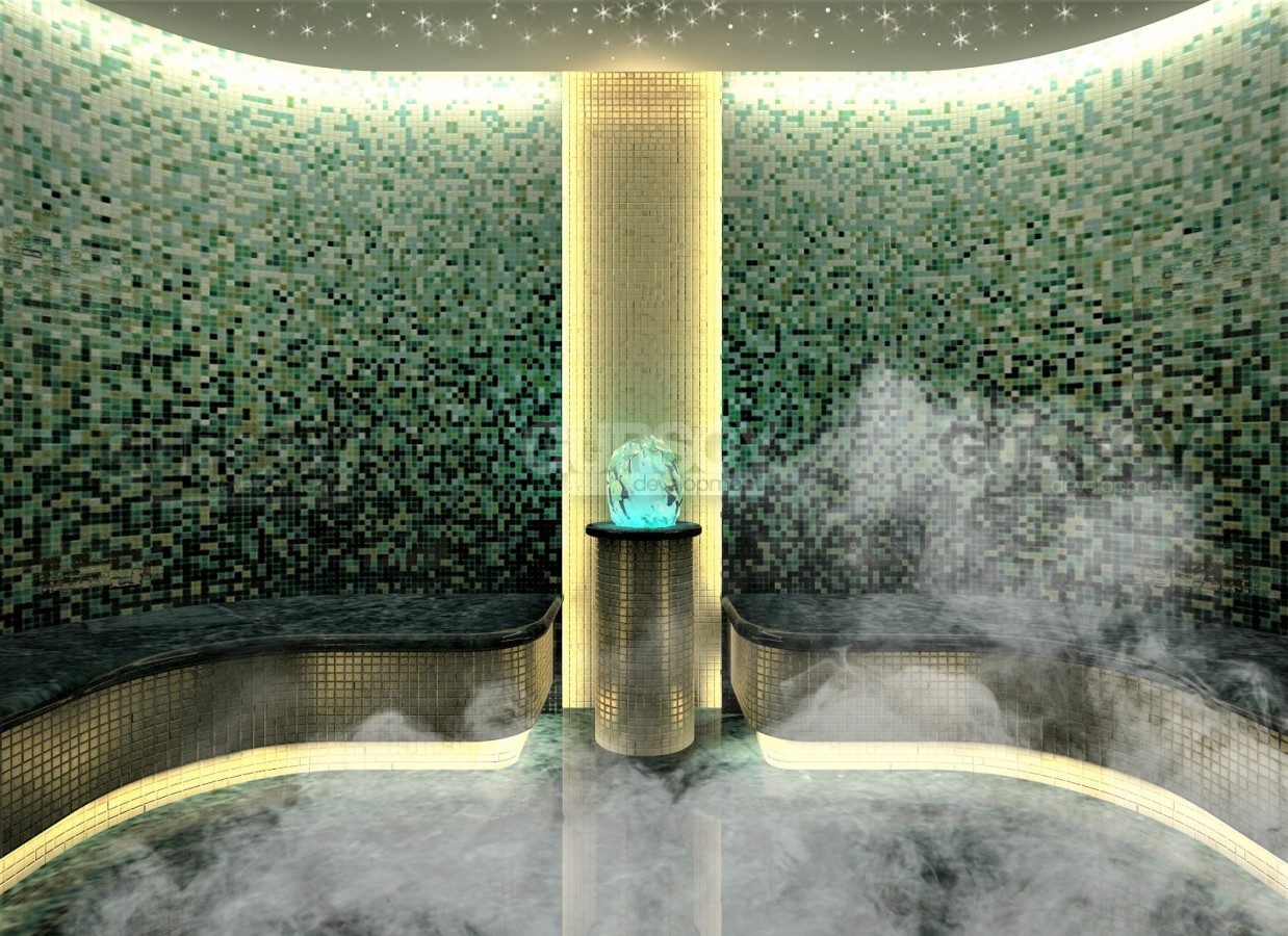 Одной из главных особенностей комплекса является прекрасно оформленный сад площадью 5000 квадратных метров, где вы сможете наслаждаться уютными беседками, пешеходными дорожками, открытым бассейном с кафе-барной зоной, теннисным кортом, баскетбольной площадкой и спортивными площадками. Комплекс также предлагает фитнес-центр, СПА-центр, турецкую баню, сауну, парную, бильярдный зал и крытый бассейн для вашего комфорта и развлечения.