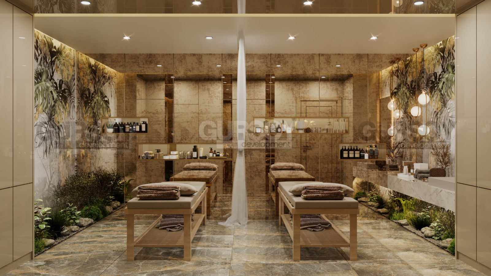 SPA-центр включает в себя закрытый бассейн, турецкую баню, сауну, джакузи, VIP-SPA, массажные комнаты, зону отдыха и тренажерный зал. Также в комплексе имеется детская игровая комната и кафе. Огороженная территория комплекса обеспечивает безопасность жильцов, а открытая парковка на 20 парковочных мест и закрытая парковка на 38 мест обеспечивают удобную парковку для автомобилей жильцов и их гостей.