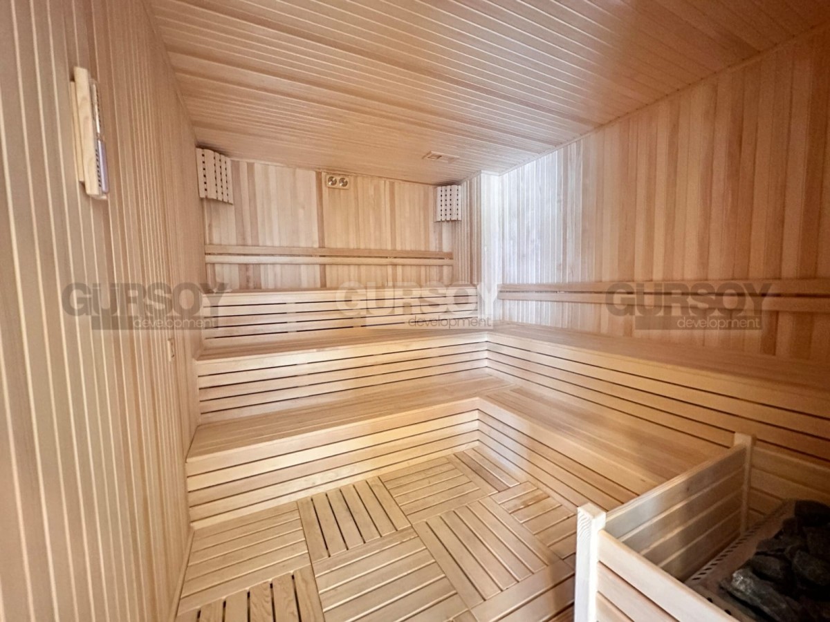 Комплекс, где находится квартира, — это настоящий рай для любителей активного образа жизни. Здесь есть все для полноценного отдыха и развлечений, сравнимое с уровнем 5-звездочного отеля: открытый бассейн с аквапарком, крытый бассейн, хамам, сауна, фитнес-центр, теннисный корт и баскетбольная площадка, ресторан, большая зеленая территория с зоной для барбекю, детская игровая площадка, открытая парковка, система охраны и видеонаблюдения.