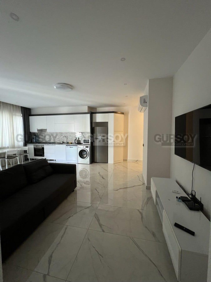 В центре Аланьи предлагается меблированная квартира планировки 1+1 площадью 65 м². Апартаменты расположены на 5 этаже дома, построенного в 2019 году, и имеют красивый вид на море. Планировка включает гостиную с кухней американского типа, спальню, ванную комнату и балкон. Квартира полностью готова к проживанию.