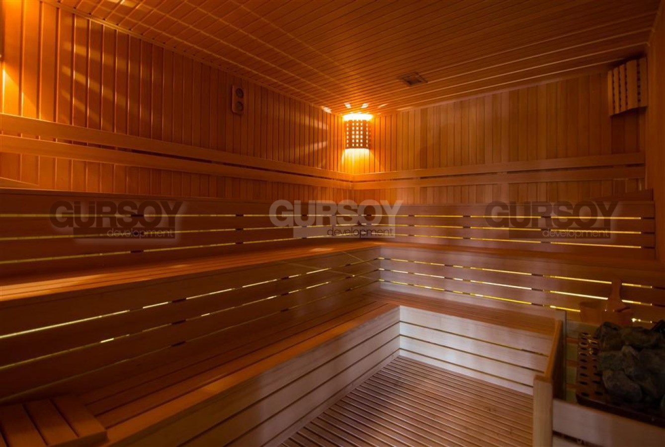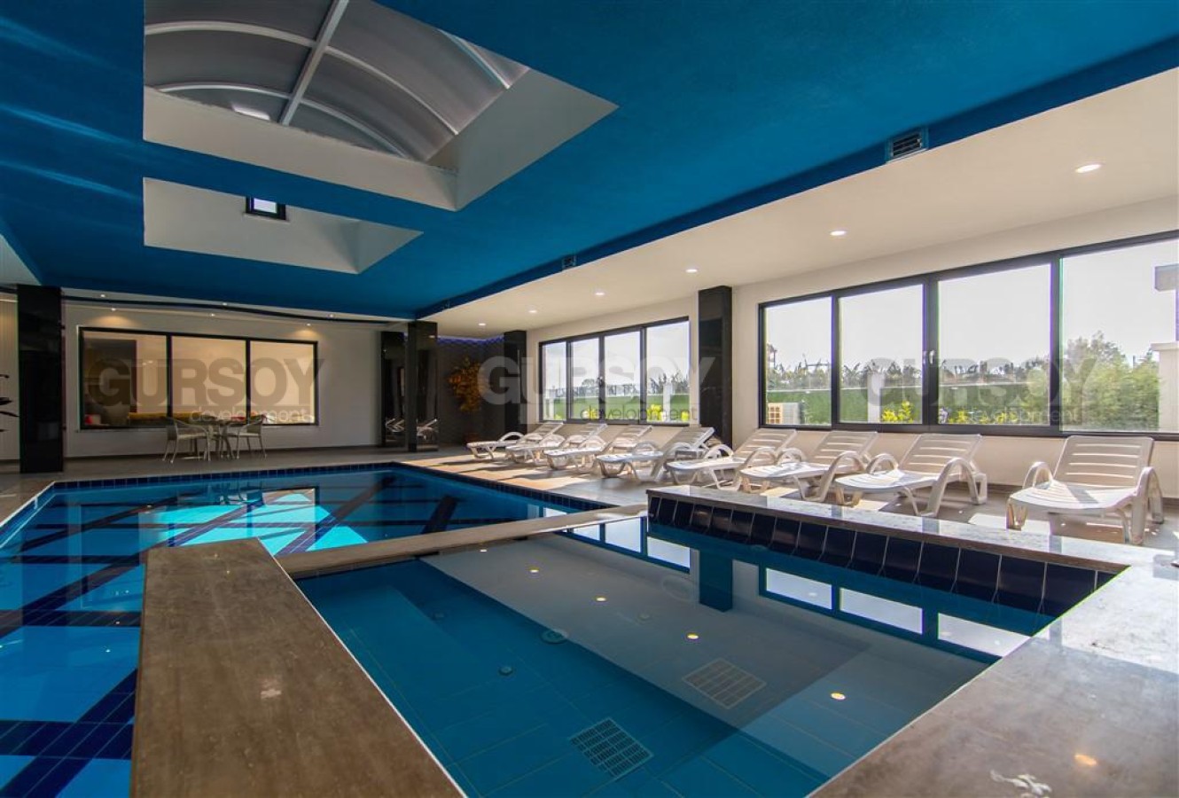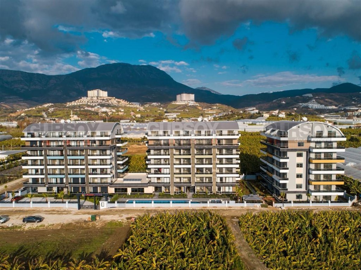 Жилой комплекс предлагает высокий уровень комфорта и развлечений: открытый и крытый бассейны, сауна, джакузи, фитнес-зал, турецкий хамам, беседка, зона барбекю, лифт, консьерж, генератор, система видеонаблюдения и кодовый вход. Также есть парковка. Квартира открывает живописный вид на бассейн и горы, создавая атмосферу спокойствия и релакса.