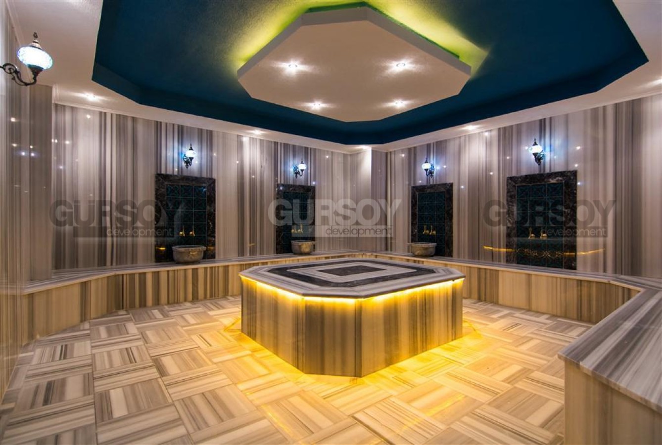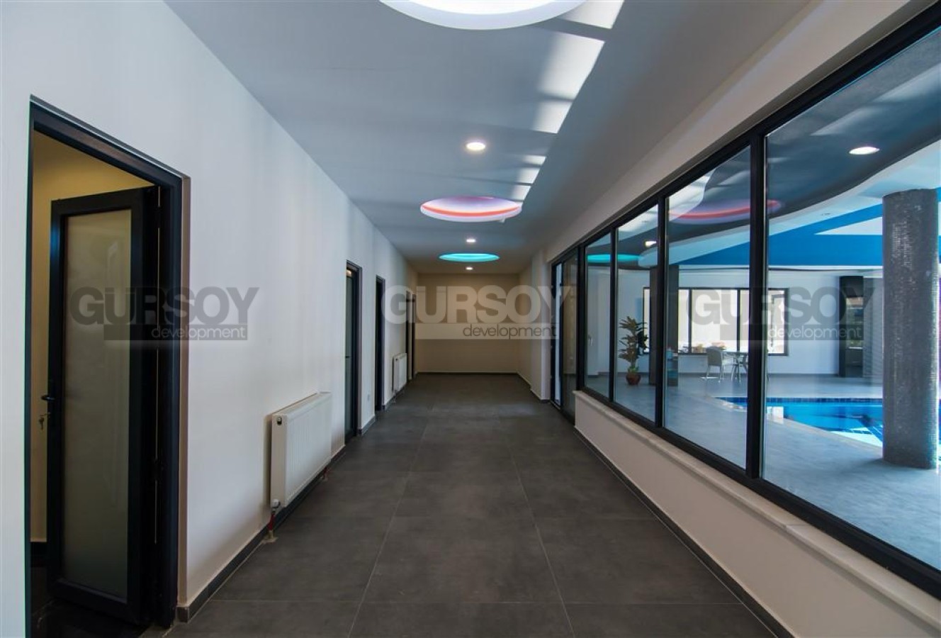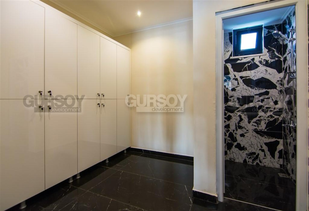Жилой комплекс предлагает высокий уровень комфорта и развлечений: открытый и крытый бассейны, сауна, джакузи, фитнес-зал, турецкий хамам, беседка, зона барбекю, лифт, консьерж, генератор, система видеонаблюдения и кодовый вход. Также есть парковка. Квартира открывает живописный вид на бассейн и горы, создавая атмосферу спокойствия и релакса.