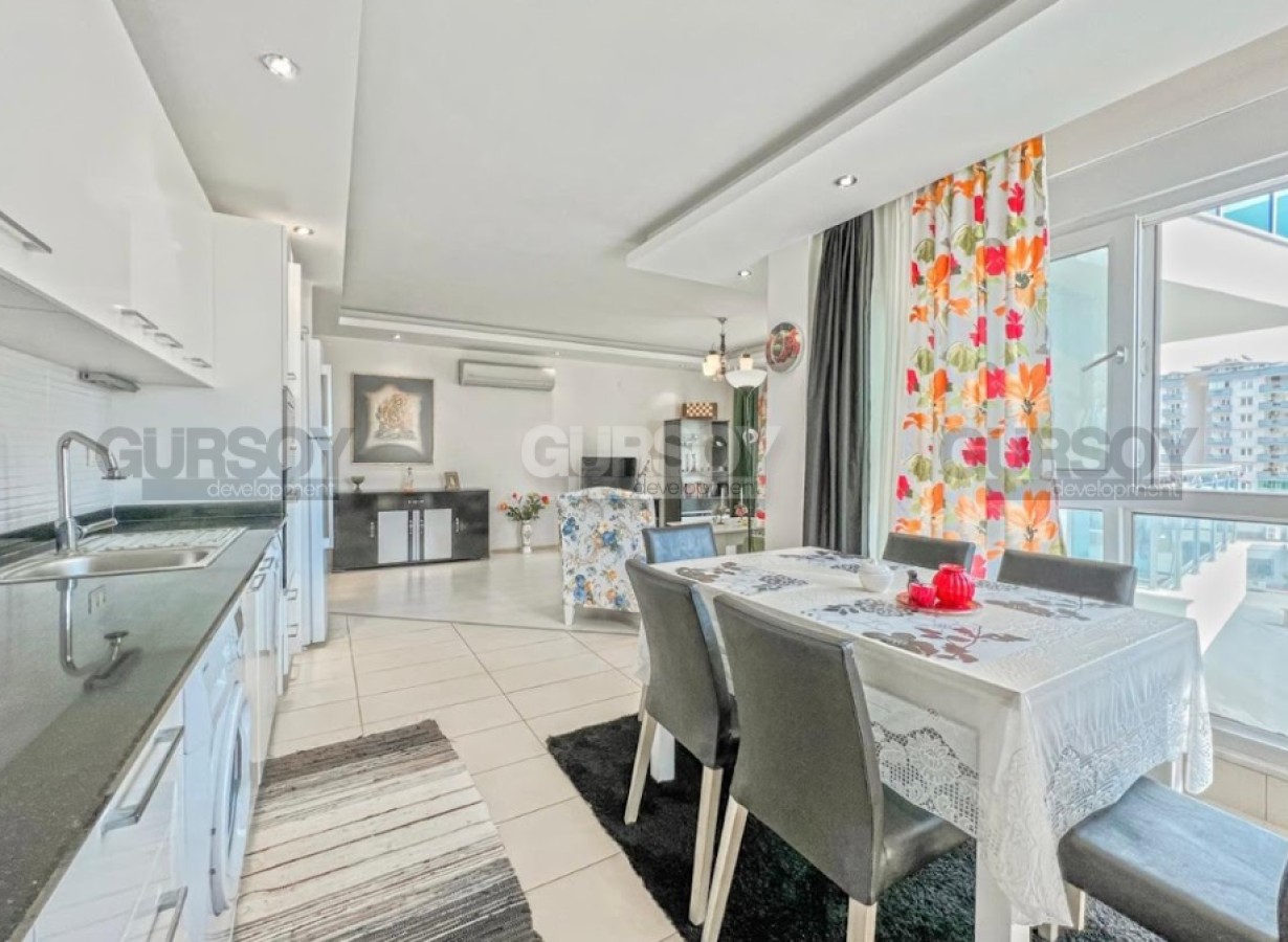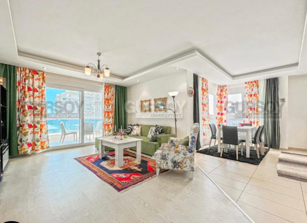 Предлагаем вашему вниманию шикарную квартиру 2+1 площадью 120 м² в престижном жилом комплексе. Апартаменты полностью меблированы и готовы к заселению. Планировка включает просторную гостиную, совмещённую с кухней, две уютные спальни, современную ванную комнату и балкон с видом на бассейн. Светлые и стильные интерьеры создают комфортную атмосферу, а качественная мебель и техника обеспечат удобство проживания.