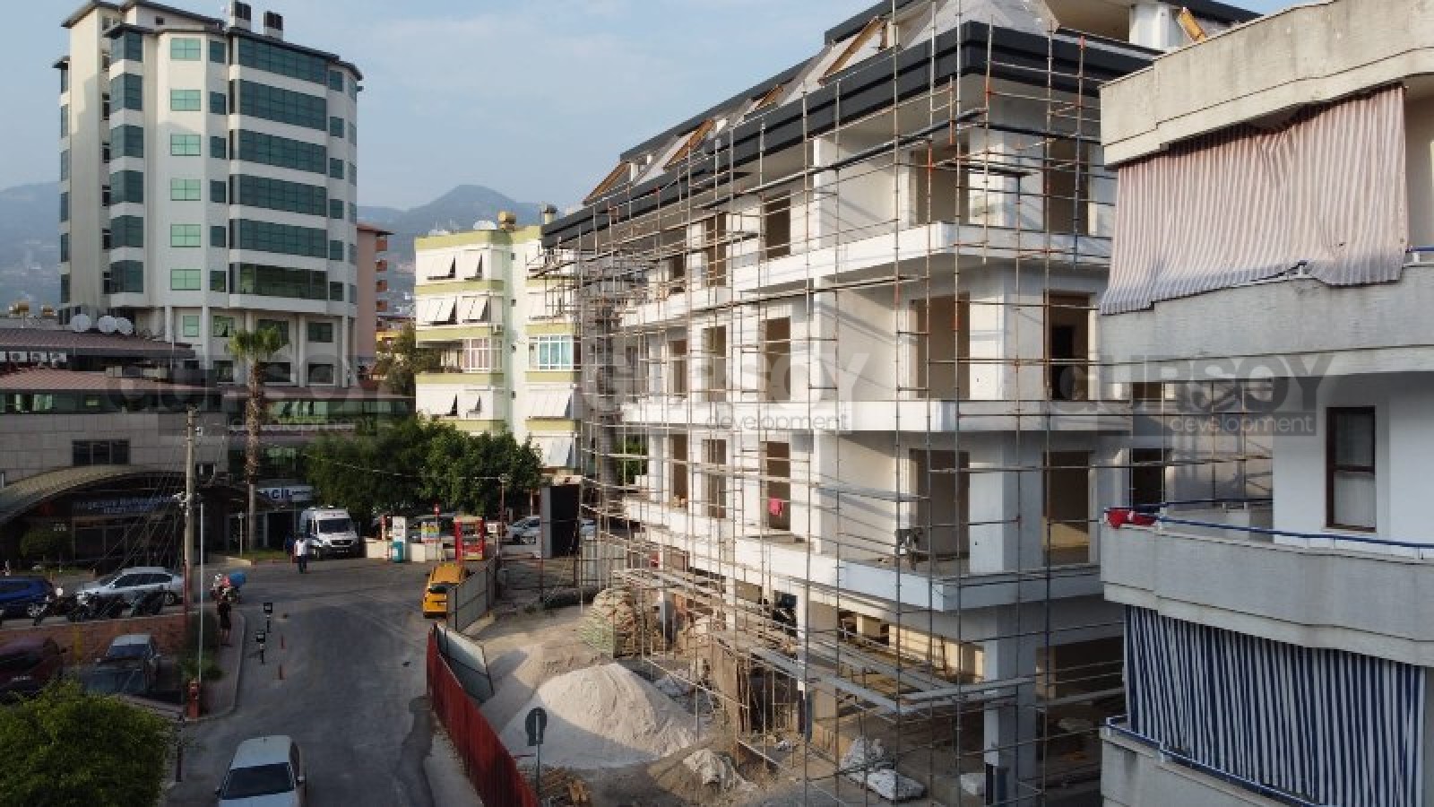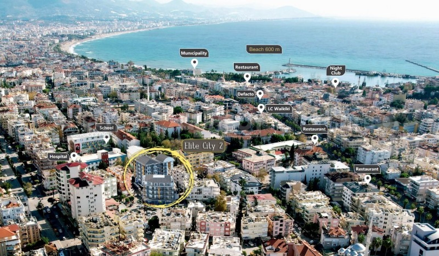 Участок, на котором ведется строительство, удачно расположен в двух минутах ходьбы от центра Аланьи, с супермаркетами, бутиками, кафе, ресторанами, салонами красоты, отделениями банков и связи; и в 700 метрах от роскошного пляжа, с золотистым песком, пологим входом в воду и кристально чистым морем.