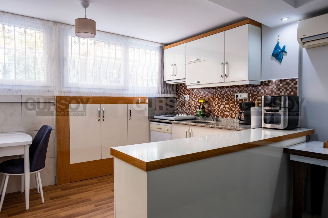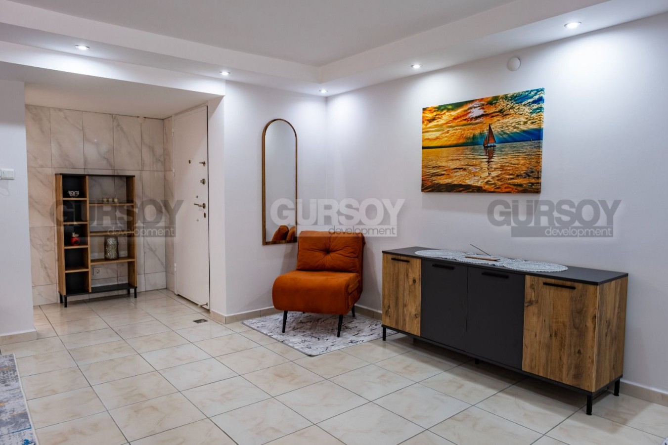 Предлагаем уютную квартиру планировки 1+1 общей площадью 50 м², расположенную на входном (цокольном) этаже. Квартира полностью меблирована и готова к заселению — в стоимость входит вся необходимая мебель и техника. Планировка включает светлую гостиную с кухонной зоной, спальню и ванную комнату. Это отличный вариант для тех, кто ищет готовое жилье без лишних вложений.