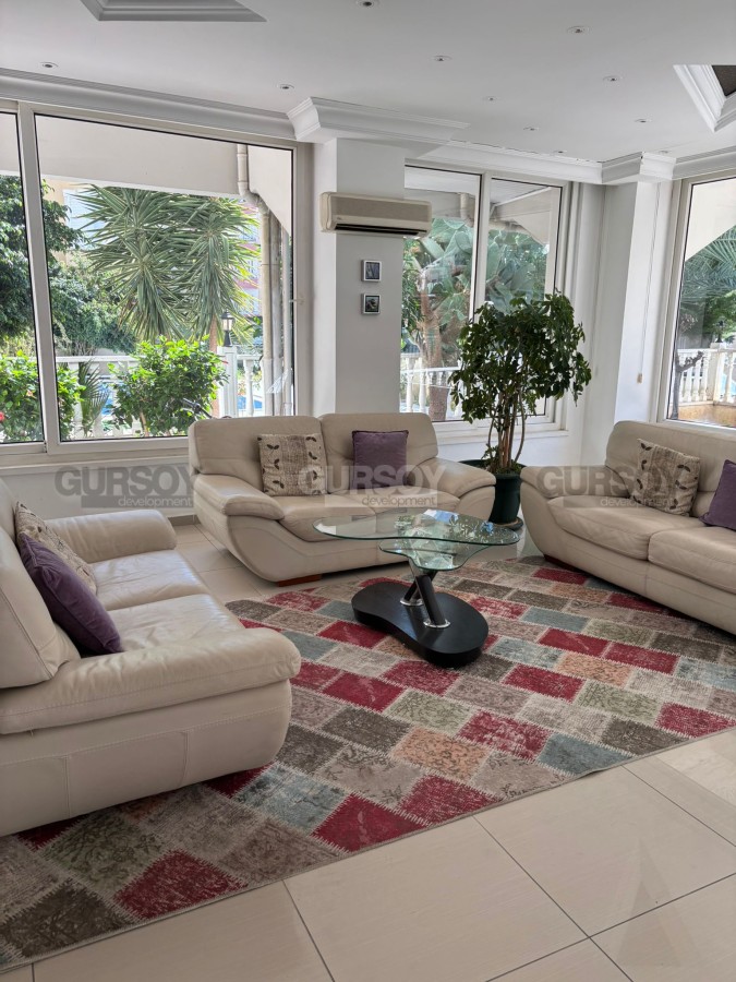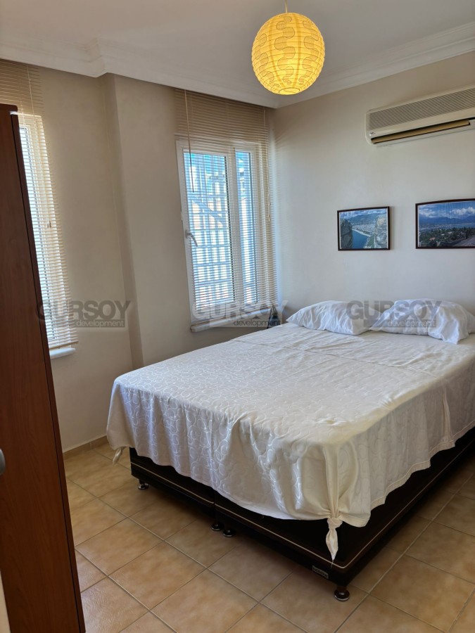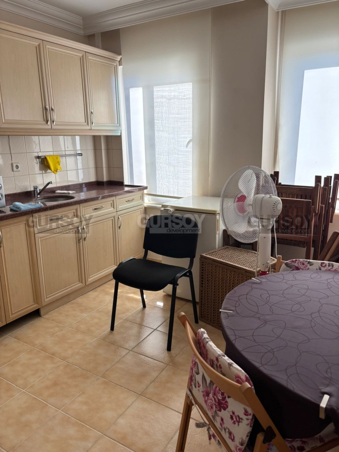 Просторная квартира планировки 1+1 общей площадью 90 м² расположена на 3-м этаже. Планировка нестандартная и очень удобная: отдельная кухня, две ванные комнаты и два балкона, что является редкостью для формата 1+1. Квартира полностью меблирована и готова к проживанию. Из окон частично открывается вид на крепость Аланьи, что придаёт объекту дополнительную атмосферу и ценность.