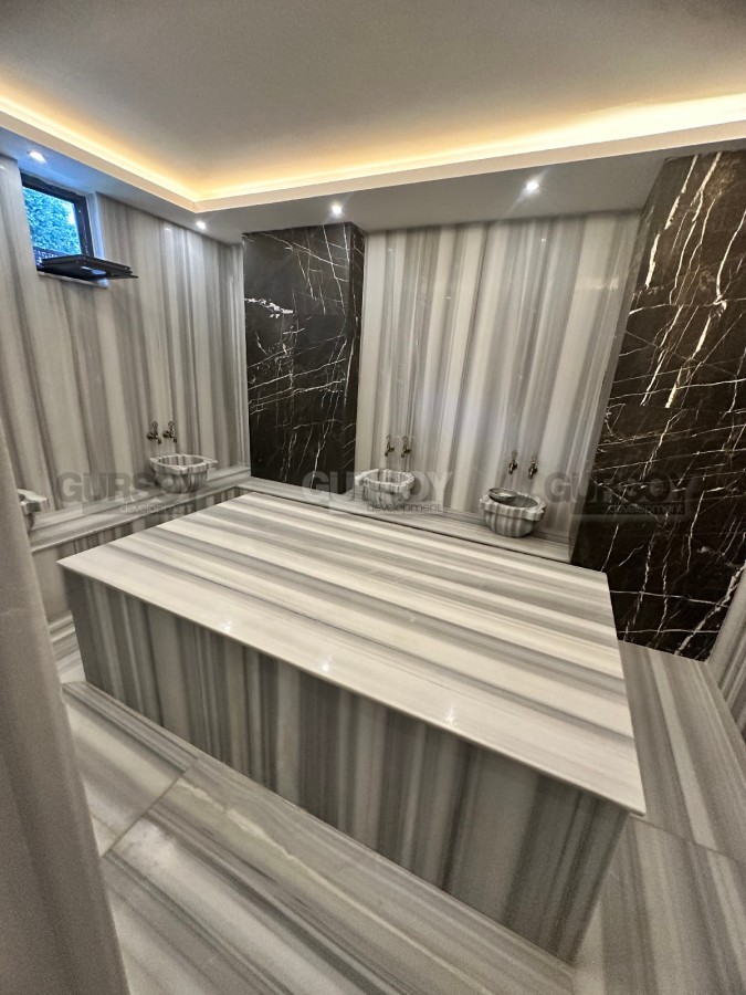 Жилой комплекс предлагает своим жителям комфорт и развитую инфраструктуру, соответствующую уровню отельного сервиса. К услугам собственников: открытый и крытый бассейн, сауна, хамам, современный фитнес-зал, детская игровая площадка. На территории также предусмотрены генератор и круглосуточный консьерж-сервис. Ежемесячное обслуживание комплекса (айдат) составляет 1500 TL.