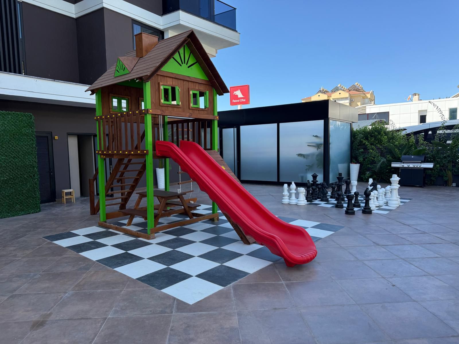 Комплекс был построен с учетом самых современных стандартов и предлагает своим жильцам широкий спектр удобств. В комплексе есть как открытый бассейн с аквапарком, так и закрытый бассейн, а также сауна, хамам и парная. Для любителей активного отдыха предусмотрен фитнес-зал, игровая комната и детский парк. Зона для отдыха с беседками позволяет наслаждаться свежим воздухом. Также предусмотрены 7/24 безопасность и видеонаблюдение, что обеспечит вам спокойствие и уверенность в безопасности вашего жилья.