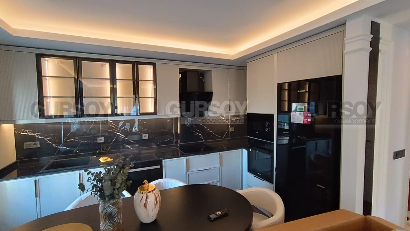 В продаже уютная квартира с планировкой 2+1 и полной меблировкой, расположенная в самом центре Аланьи — на бульваре Ататюрка, всего в 300 метрах от знаменитого пляжа Клеопатра. Общая площадь составляет 110 м². Квартира полностью обновлена и обставлена новой техникой и мебелью высокого качества.