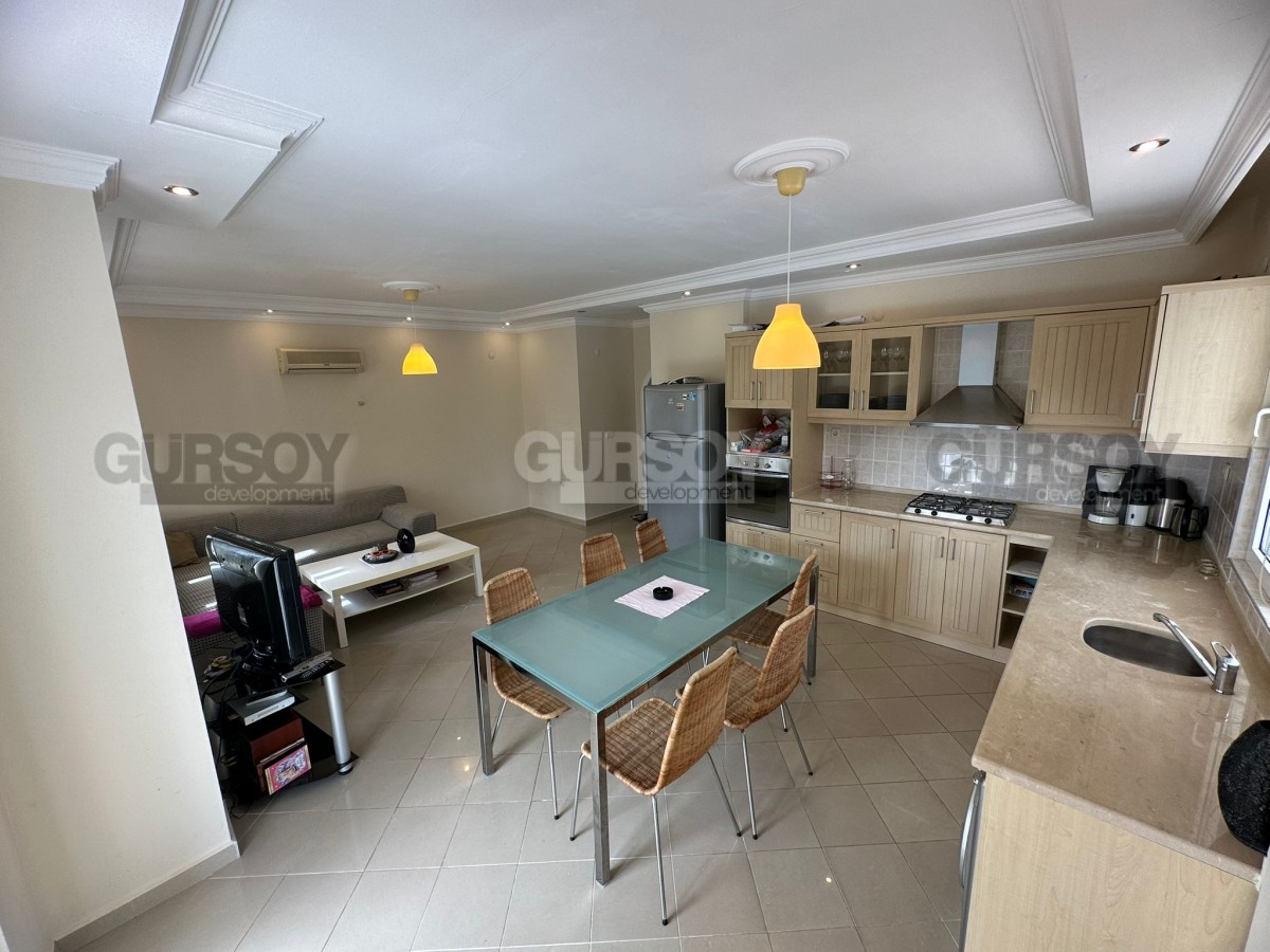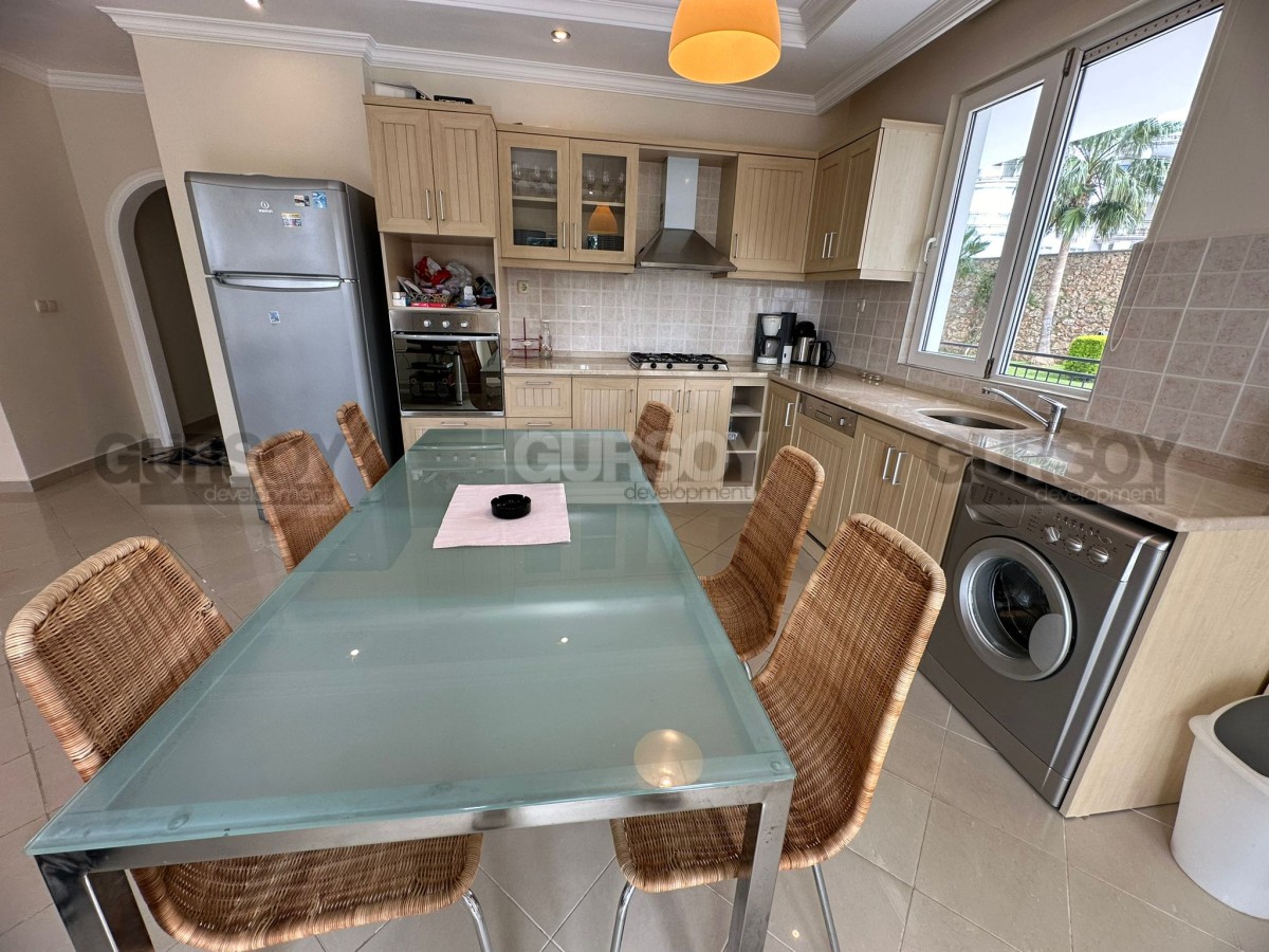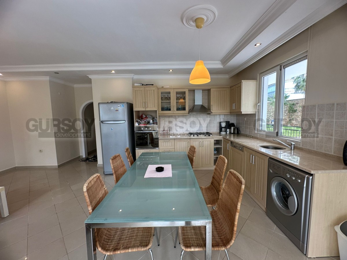 Квартира 2+1 – вариант для комфортной жизни или выгодного инвестирования. Просторная и светлая, с общей площадью 125 м², она расположена на 1-м этаже и включает две уютные спальни, гостиную, совмещённую с кухней, два санузла и два балкона. Один из балконов имеет выход к бассейну и оборудован зоной для барбекю, создавая прекрасные условия для отдыха и приёма гостей.