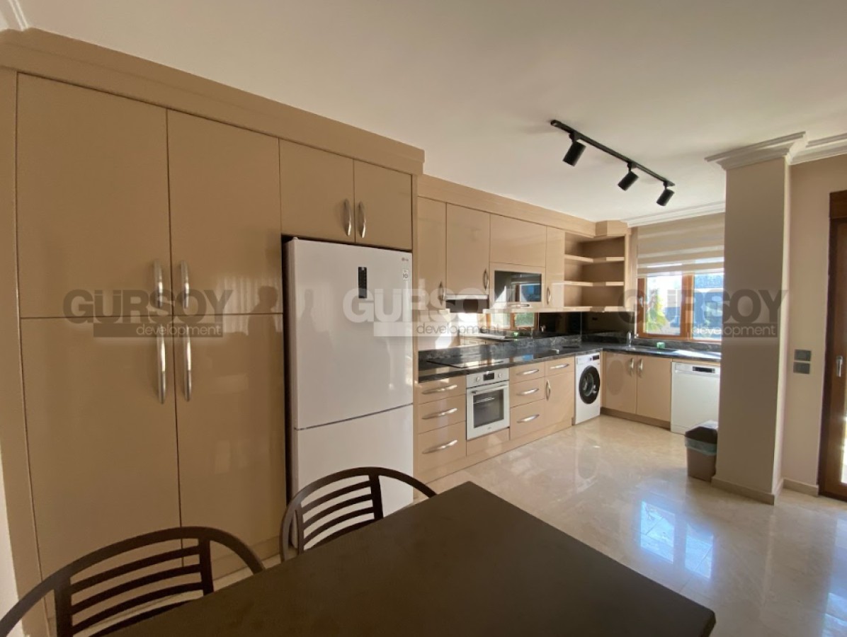 Продается квартира 2+1 с американской кухней в престижном районе Кестель. Общая площадь – 115 м², жилая – 105 м². Квартира расположена на первом этаже в 5-этажном доме, полностью меблирована и готова к заселению. Окна выходят на юго-запад, открывая виды на город, природу и бассейн.