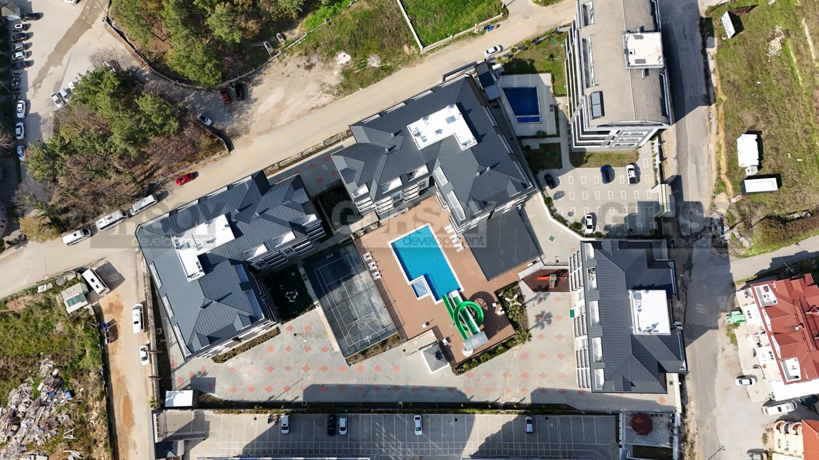 Жилой комплекс предлагает инфраструктуру отеля высокого класса. К услугам жильцов открытый и закрытый бассейны, фитнес-зал, сауна, турецкий хамам, массажные комнаты, а также спортивные площадки для футбола, баскетбола и тенниса. На территории также есть ресторан, ухоженные зеленые зоны для прогулок, охрана, консьерж, генератор, а для автомобилей предусмотрены как открытая, так и крытая парковка. Комплекс обеспечивает комфорт и безопасность для всей семьи круглый год.